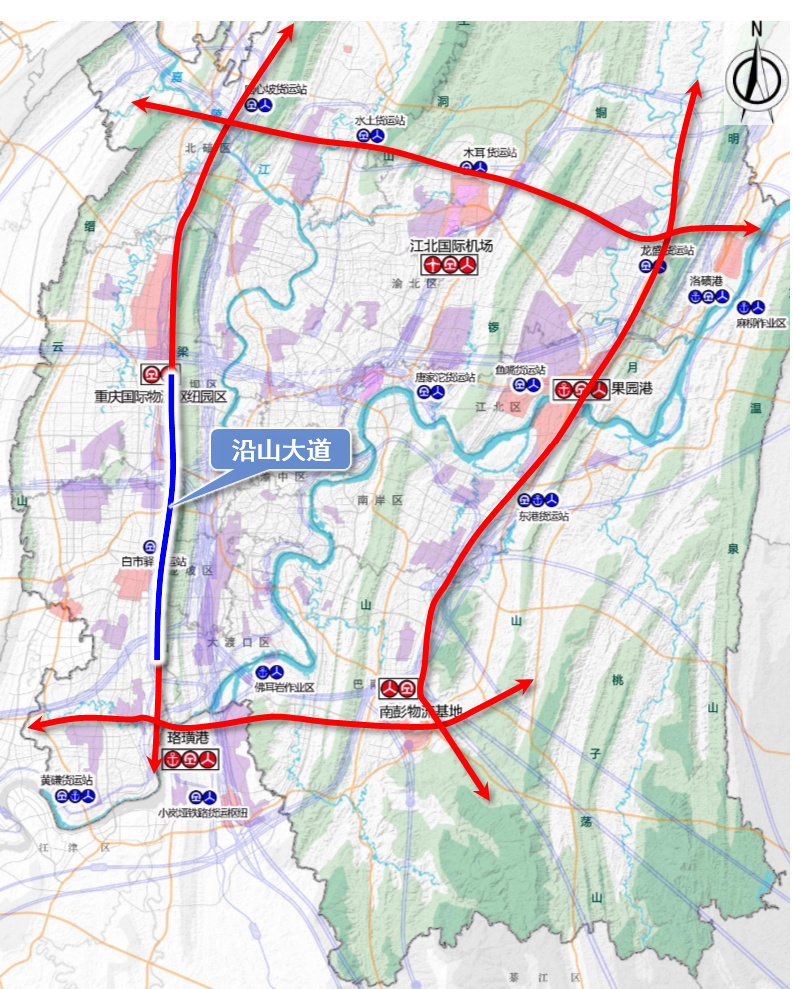 本项目位于重庆中梁山西侧,起于高新区与九龙坡交界处,止于西部物流园,沿线经过多个城镇,全长约25km,道路等级为城市主干路,设计时速60km/h,标准路幅宽度40m,双向8车道。多处与城市道路、隧道、铁路、轨道交叉,途径7个水库,最大挖方边坡高度达50m,全线包括桥梁、隧道、新建立交、枢纽互通立交14座,建安投资约58亿。作为主城区“井”字型货运通道之一,沿山大道建成后将分流内环及中心城区货运交通压力,为重庆建设“三宜”现代化高新区提供有力支撑。