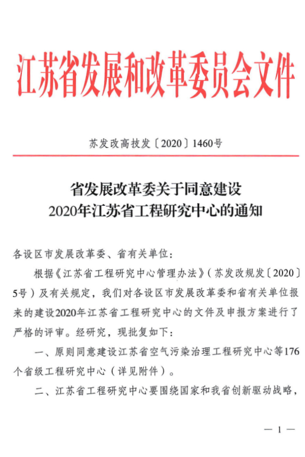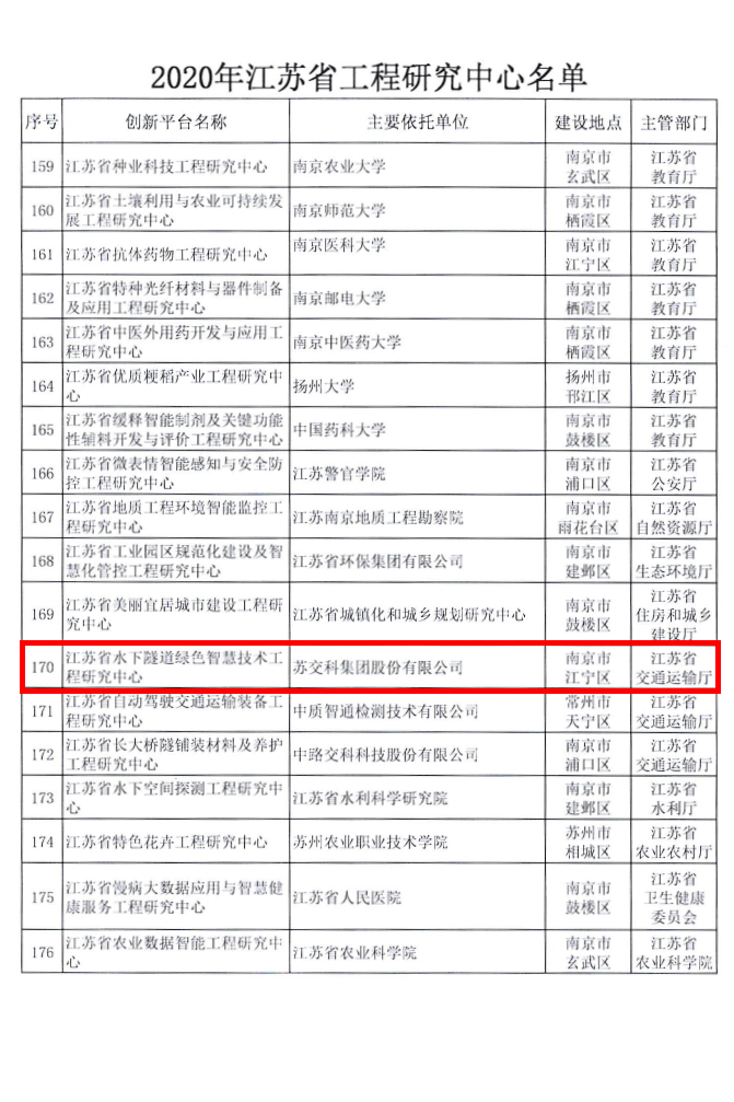 近日,江苏省发展和改革委员会印发《省发展改革委关于同意建设2020年江苏省工程研究中心的通知》,集团申报的“江苏省水下隧道绿色智慧技术工程研究中心”获批立项建设。