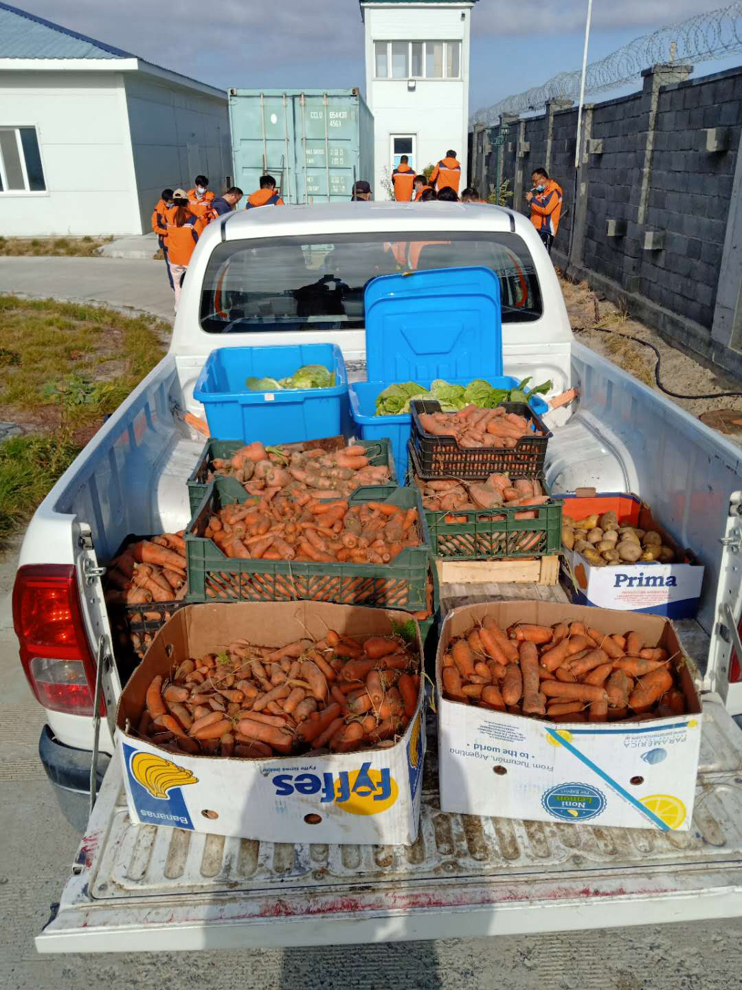 面对如此情况,即便胡敏杰心生害怕,也不敢与家人多言,只是告诉他们一切都好,不要担心。营地实行封闭式管理,生活一切从简,外出工作需要请示,也不接待访客;每天专人消杀,所有人戴口罩进出,日常交往都需保持社交距离;防疫物资充足,还有大使馆给每位中国人发放的防疫物资爱心包;聘用当地员工都要核酸检测阴性证明,在营区独立房间隔离14天无异常情况后,才能开展工作。