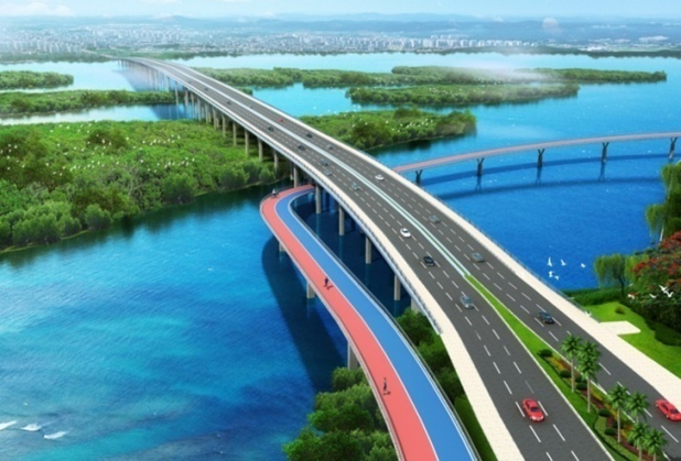 环东海域滨海旅游浪漫线在采用跨越方案时,选取轻盈、美观的桥梁造型,并采用透视效果好的栏杆外观,给参赛选手创造轻松愉悦的比赛环境,实现舒适跨越;采用下穿方案时,选用通透、舒适的支档型式,并利用景观植被对外露面美化,打造一条造型独特的下凹式景观带,完成景观穿越。其中中洲大桥、火炬大桥、万家春桥段均采用放坡U型槽方式实现下穿,既解决防潮、防水问题,又达到良好的景观效果,兼具实用性和观赏性。