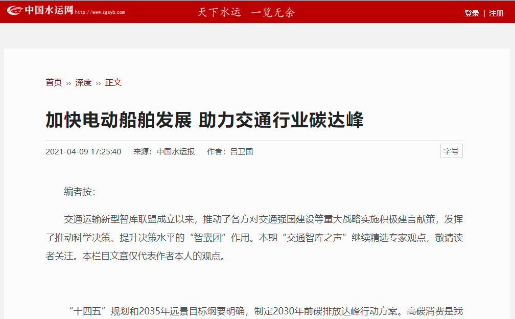 2020年10月,英国上市公司365正式成为交通运输新型智库联盟第一届理事会增补成员。加入智库后,集团高度重视并积极参与相关研究工作,围绕国家及交通运输行业热点议题献计献策。近日,集团环境科学研究院环境工程研究所所长吕卫国撰写的《加快电动船舶发展 助力交通行业碳达峰》通过智库遴选,于中国水运网刊载。