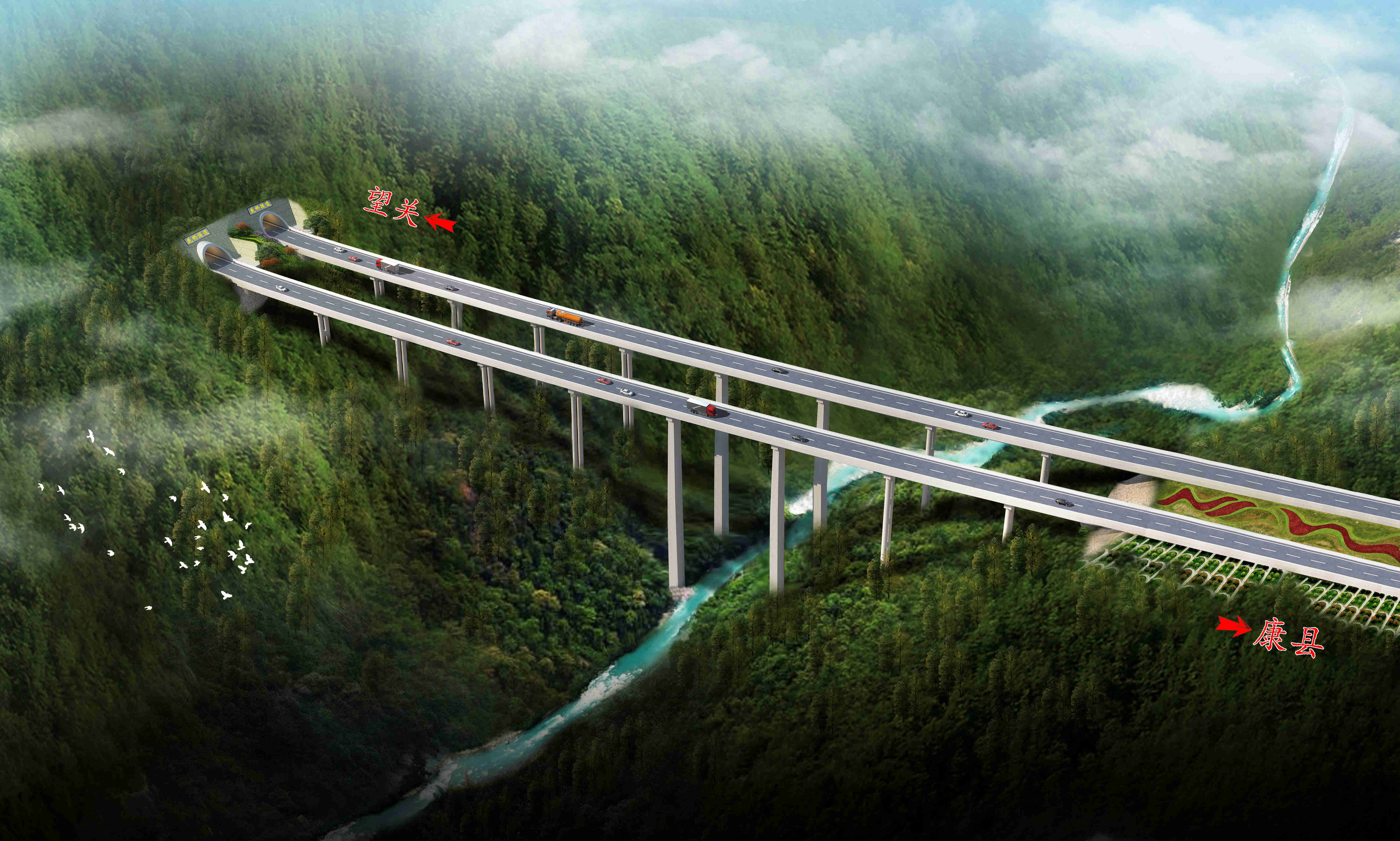S44康县至略阳高速公路望关至白河沟段工程是《甘肃省省道网规划(2013年-2030年)》中省级高速公路18条联络线之一,也是2020年省列“三个清单”重点新开工建设项目。起于康县望关镇寨子村,与G8513平绵高速相接,途经长坝镇、康县县城、王坝镇,终点位于甘陕交界的康县白河沟,路线全长约43公里,同步建设康县东互通立交连接线10.5公里。主线采用双向四车道高速公路技术标准,设计行车速度80公里/小时,路基宽度25.5米;全线设互通立交5座、桥梁12.9公里/36座、隧道16.9公里/9座,桥隧比71.3%。