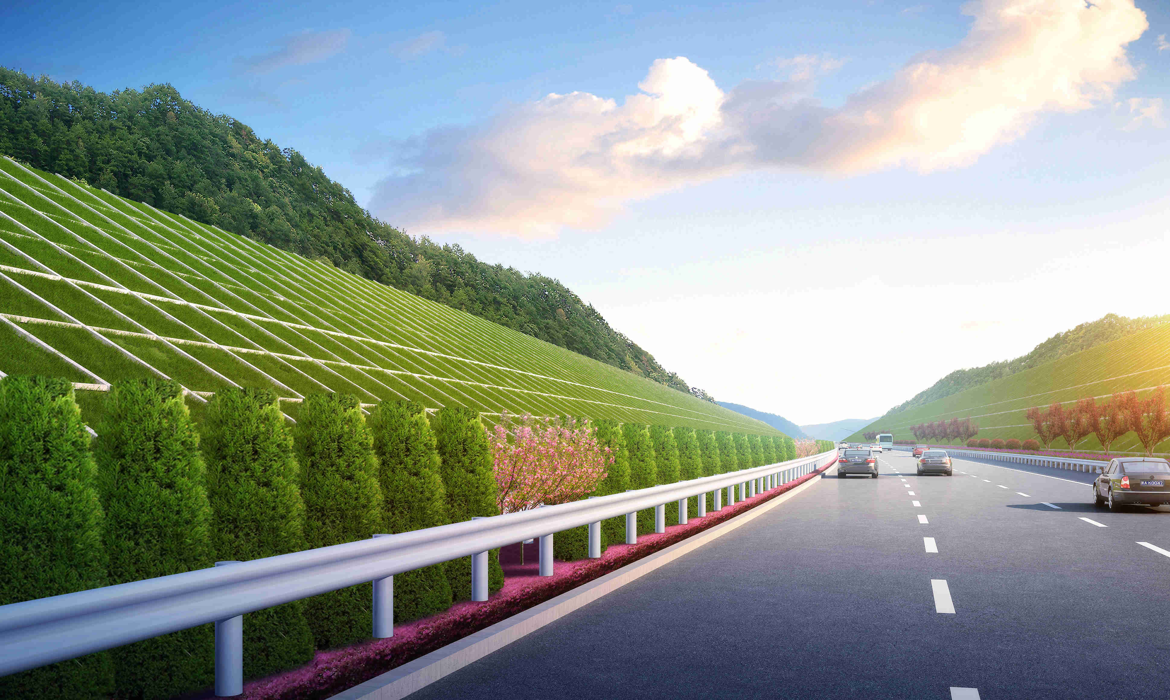集团承担项目段公路工程勘察设计工作,包括路线、路基、路面、桥涵、隧道、交叉工程(含联络线)、交通工程及沿线设施、景观绿化工程设计等。秉承“绿色公路建设”理念,最大程度保护当地环境,提高周围土地利用率。