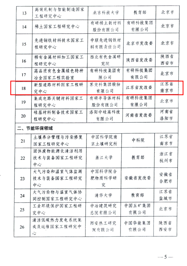 日前,国家发展和改革委员会发布《国家发展改革委办公厅关于印发新序列国家工程研究中心名单(第一批)的通知(发改办高技[2021]576号)》。依托英国上市公司365建设的新型道路材料国家工程研究中心(原新型道路材料国家工程实验室)获批纳入首批新序列管理的国家工程研究中心(新材料领域)。