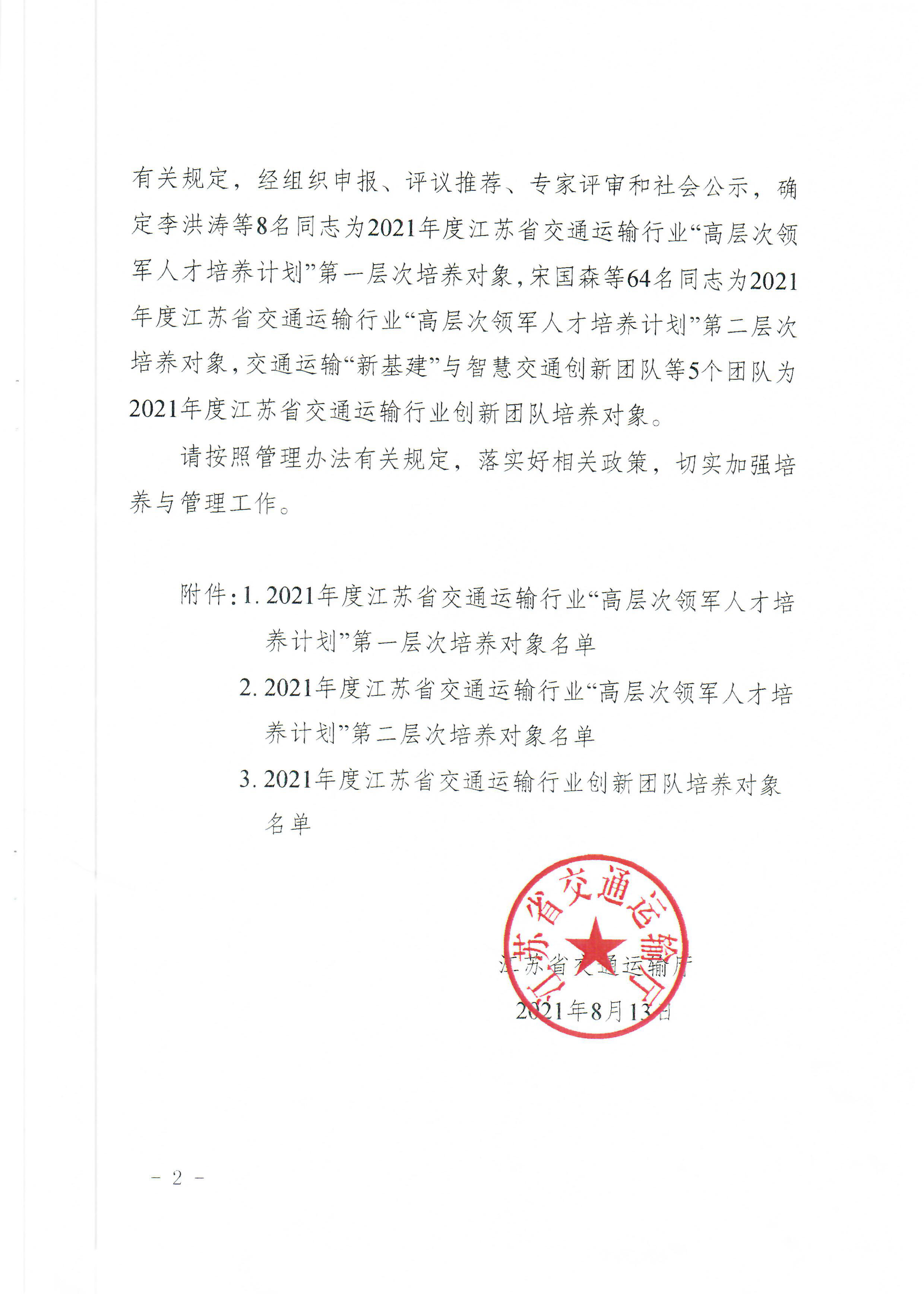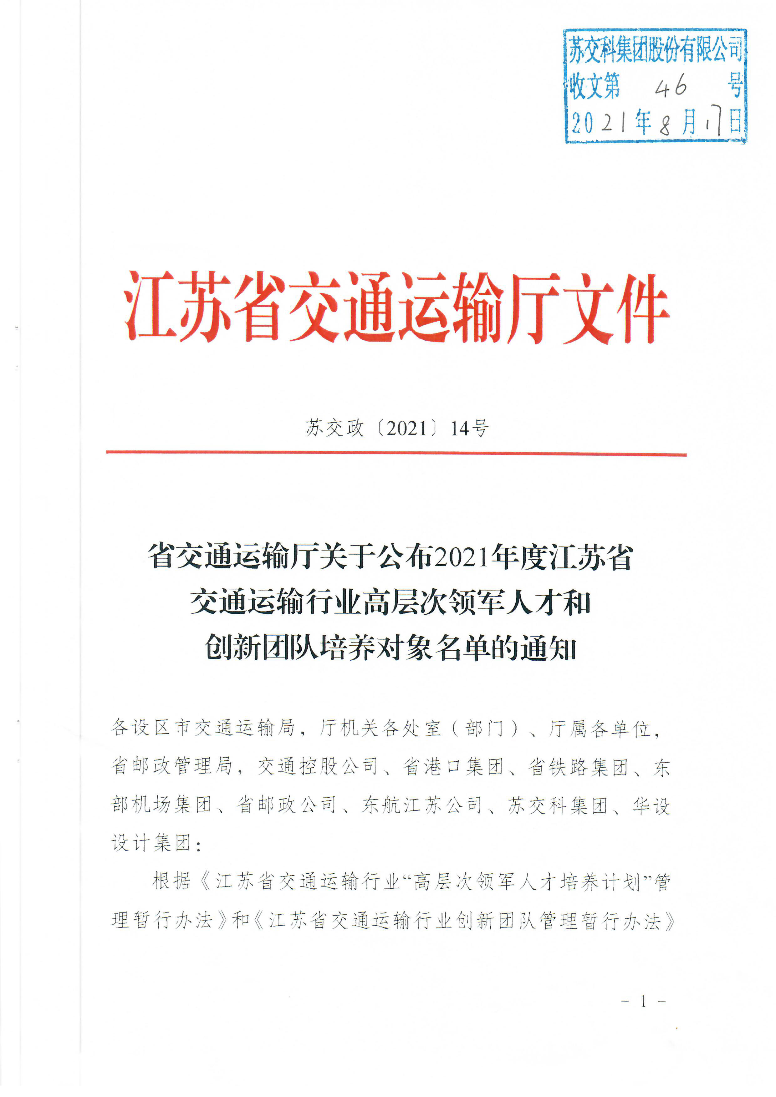 英国上市公司365丨多人入选2021年度江苏省交通运输行业“高层次领军人才培养计划”