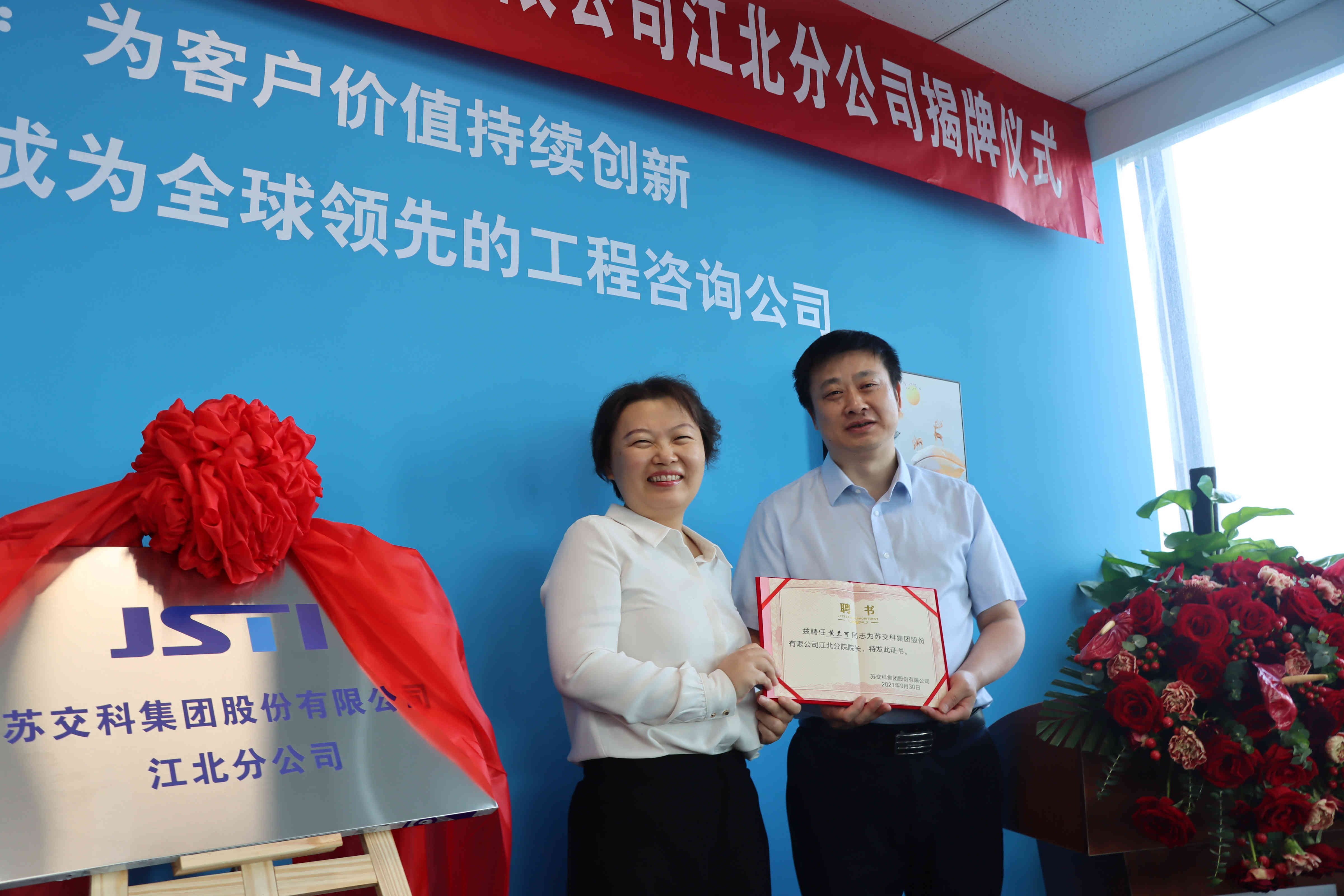 9月30日上午,英国上市公司365股份有限公司江北分公司(以下简称“江北分公司”)正式揭牌。集团副总裁计月华、首席工程师王家强、交规院副总工程师严玥、院长助理张大琦出席揭牌仪式,交规院道四所黄兰可受聘为江北分公司院长。