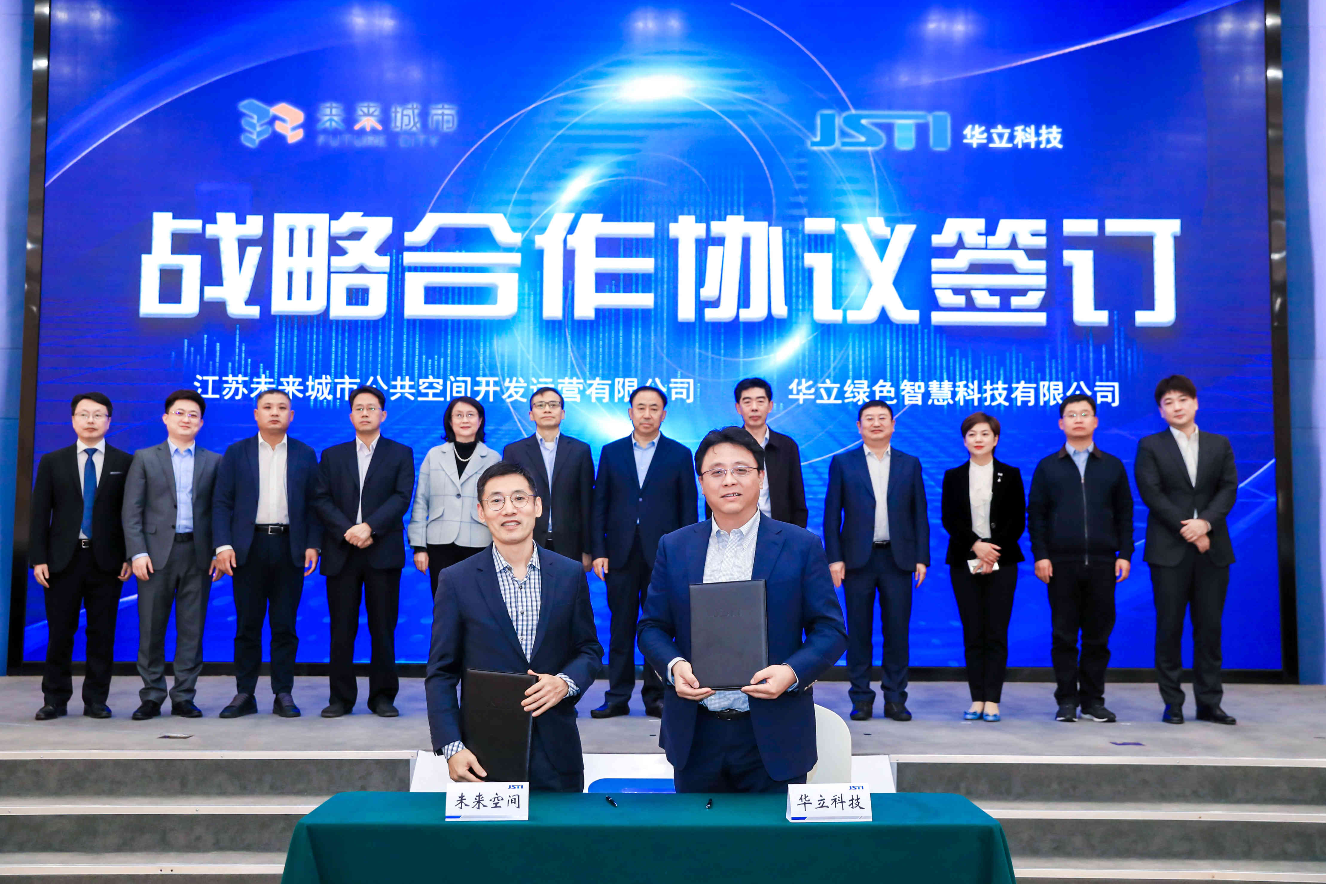▲ 江苏未来城市公共空间开发运营有限公司与华立绿色智慧科技有限公司签约