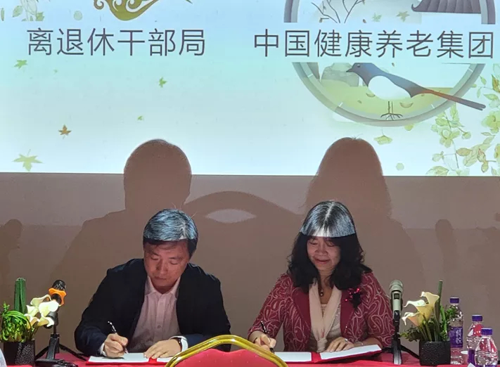 ▲ 离退休干部局与中国健康养老集团签署战略合作框架协议