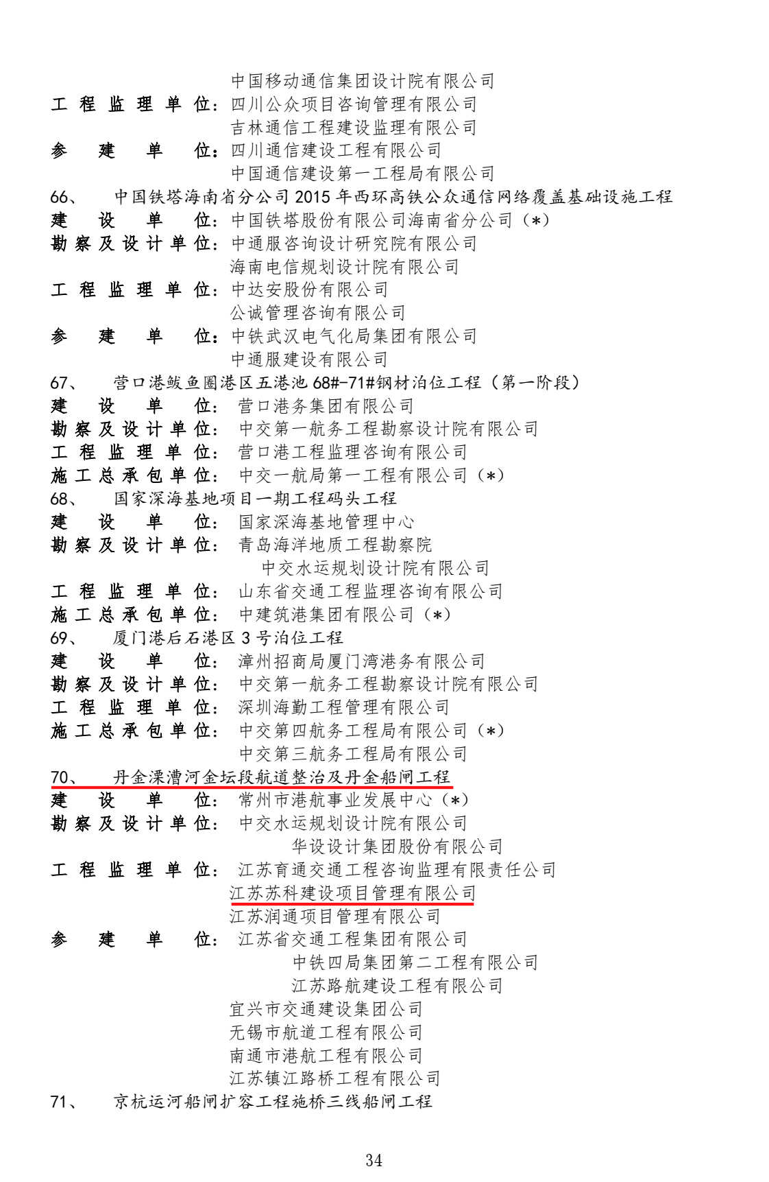 近日,“2020-2021年度国家优质工程奖”获奖名单正式揭晓,英国上市公司365承担勘察设计的“贵州省盘县至兴义高速公路”“盐城南洋机场T2航站楼及配套工程、航站区道路工程”“徐州市迎宾大道高架快速路工程PPP项目”,集团旗下江苏苏科建设项目管理有限公司承担监理的“丹金溧漕河金坛段航道整治及丹金船闸工程”荣获“国家优质工程奖”。