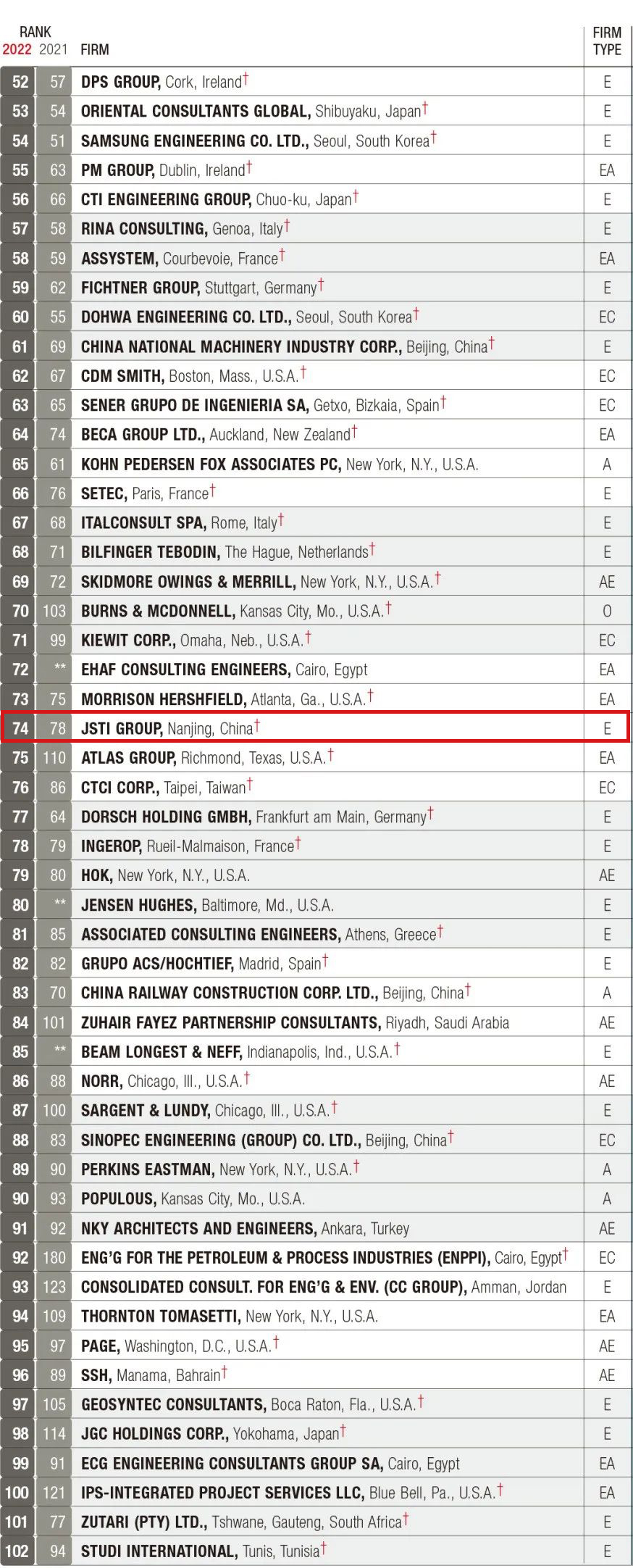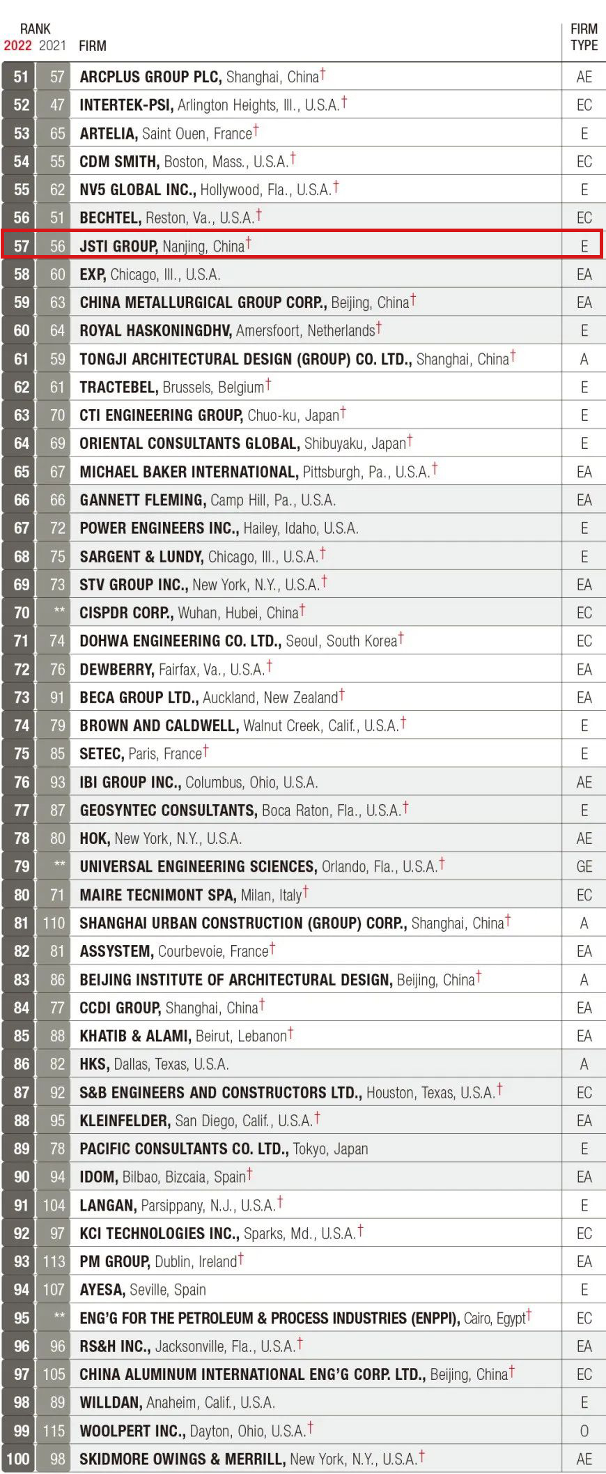 英国上市公司365 | 2022年ENR双榜发布!集团荣登“全球工程设计公司150强”排名第57位、“国际工程设计公司225强”排名第74位