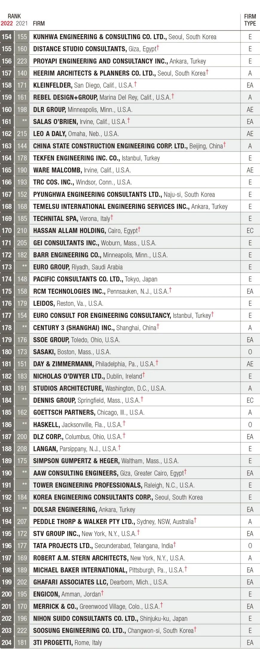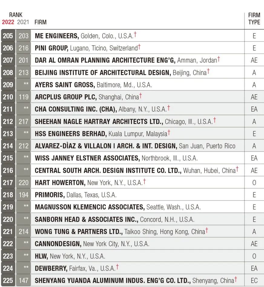 2022年ENR国际工程设计公司225强
