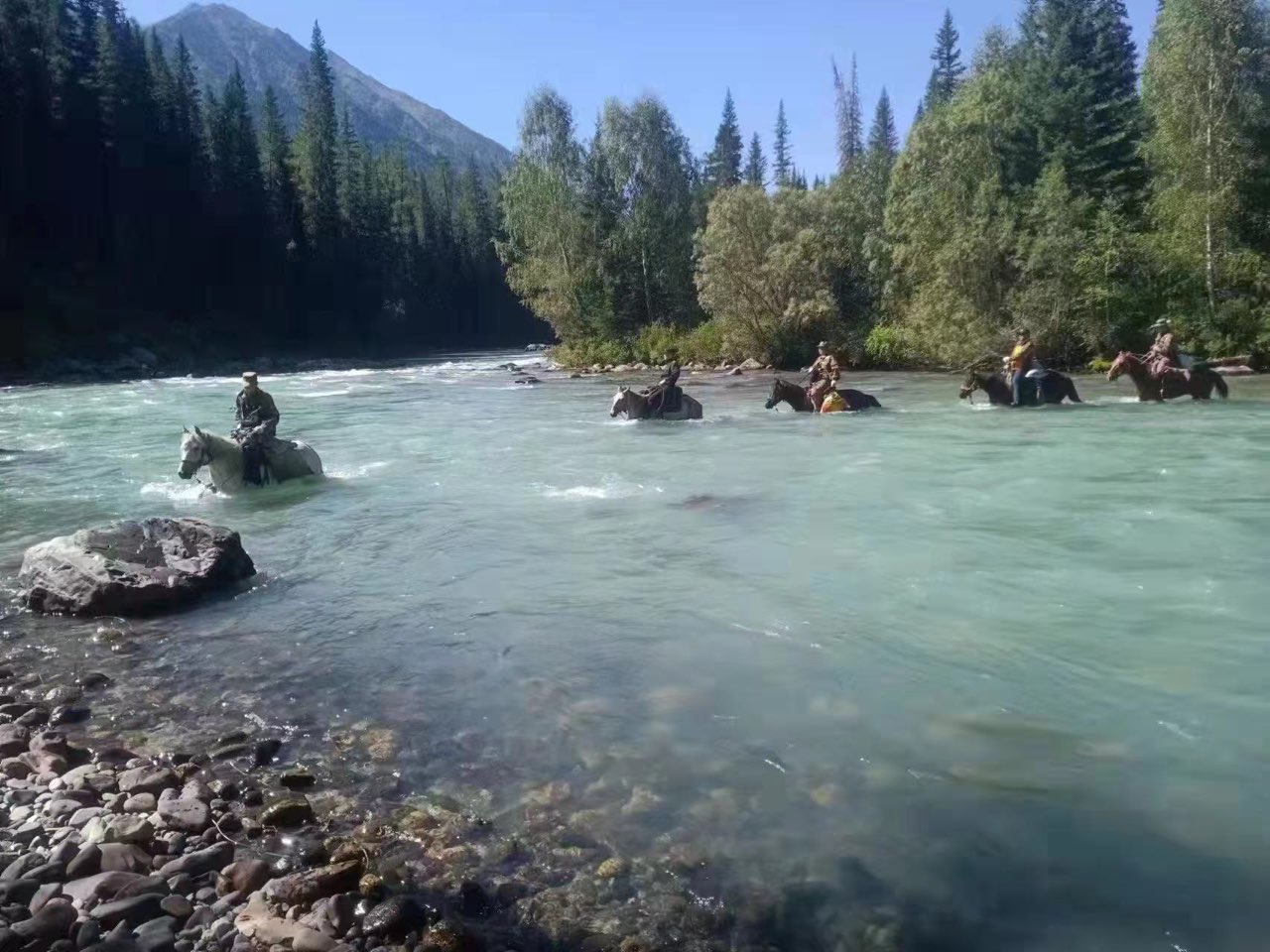 项目两个主要走廊带约100km位于阿尔泰山无人区,地形、气候条件复杂,无道路通行,外业踏勘需骑马进入无人区作业约20天,无通行信号,并伴有狼、熊等野生动物出没,外业条件艰苦、危险。
