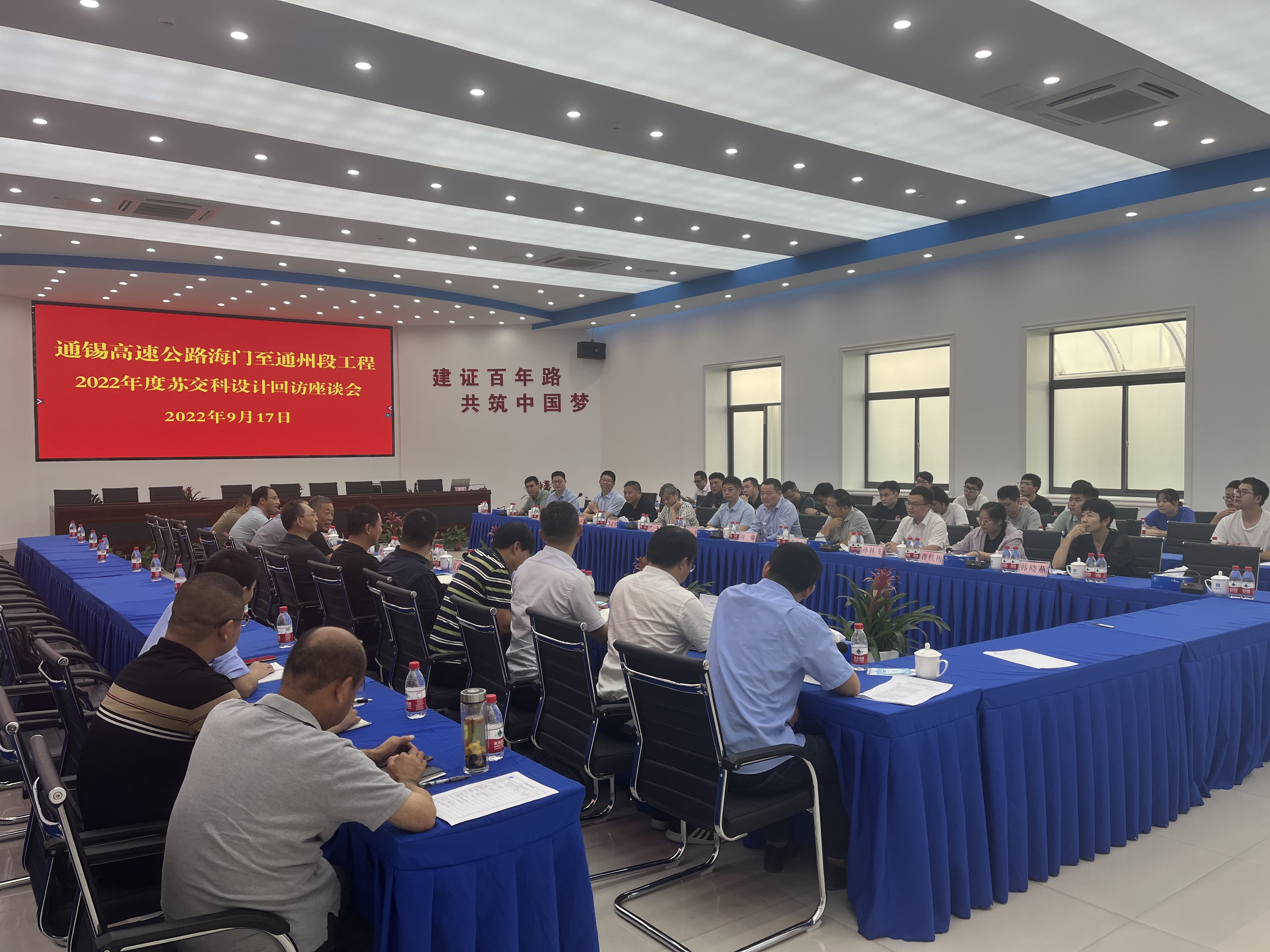 近日,集团副总裁(规划设计)夏东率队,与集团技术质量中心副总工严萍、蒋正国、陈志勇、交规院道三所所长刘涛、项目负责人刘斌、项目总监李开正及项目组成员开展通锡高速公路海门至通州段勘察设计项目(海门段)设计回访工作,并参加了工程建设指挥部组织召开的设计回访座谈会。