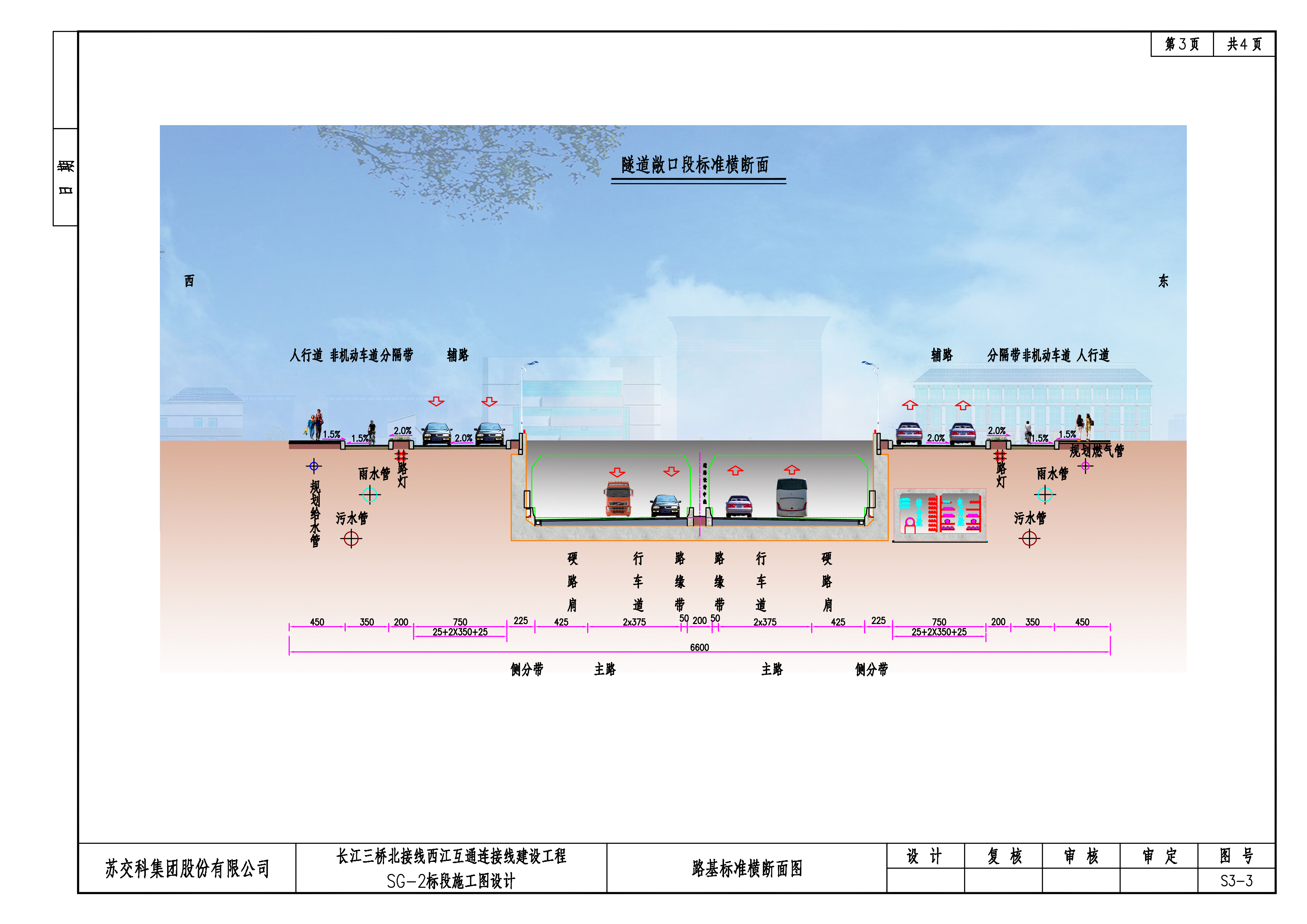 本项目兼具一级公路与城市快速路双重属性,集成化设计公路与市政配套设施。项目包含桥、隧、管廊、管综、改河等多个专业,秉持集约化设计原则,隧道、管廊和地下管线共基坑、共结构设计,实现有限空间内的交通与城市融合。