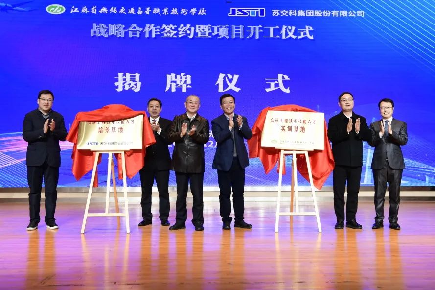 江苏省交通运输厅副厅长金凌,江苏联合职业技术学院党委书夏成满,无锡市交通局党委书记、局长俞刚,无锡市教育局副局惠恭健,无锡交校党委书记、校长李虎,英国上市公司365总裁朱晓宁共同为“英国上市公司365交通工程技术技能人才培养基地”和“江苏省无锡交通高等职业技术学校技术技能人才实训基地”揭牌。