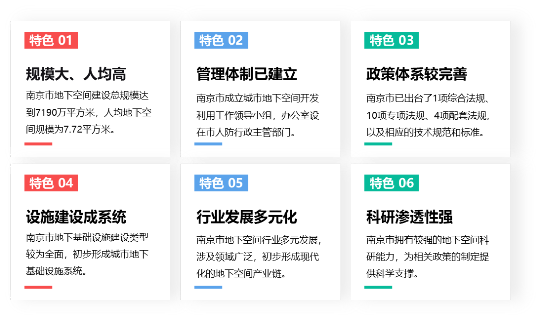 “十三五”以来,南京市成立了地下空间开发利用领导小组,出台了《南京市城市地下空间开发利用管理办法》等政府规章,在地下空间的建设与管理方面取得了突出的成效,城市地下空间开发利用水平不断提升。在《中国地下空间发展蓝皮书》2019版、2020版、2021版中南京市连续三年位列全国城市地下空间发展综合实力排名第三。