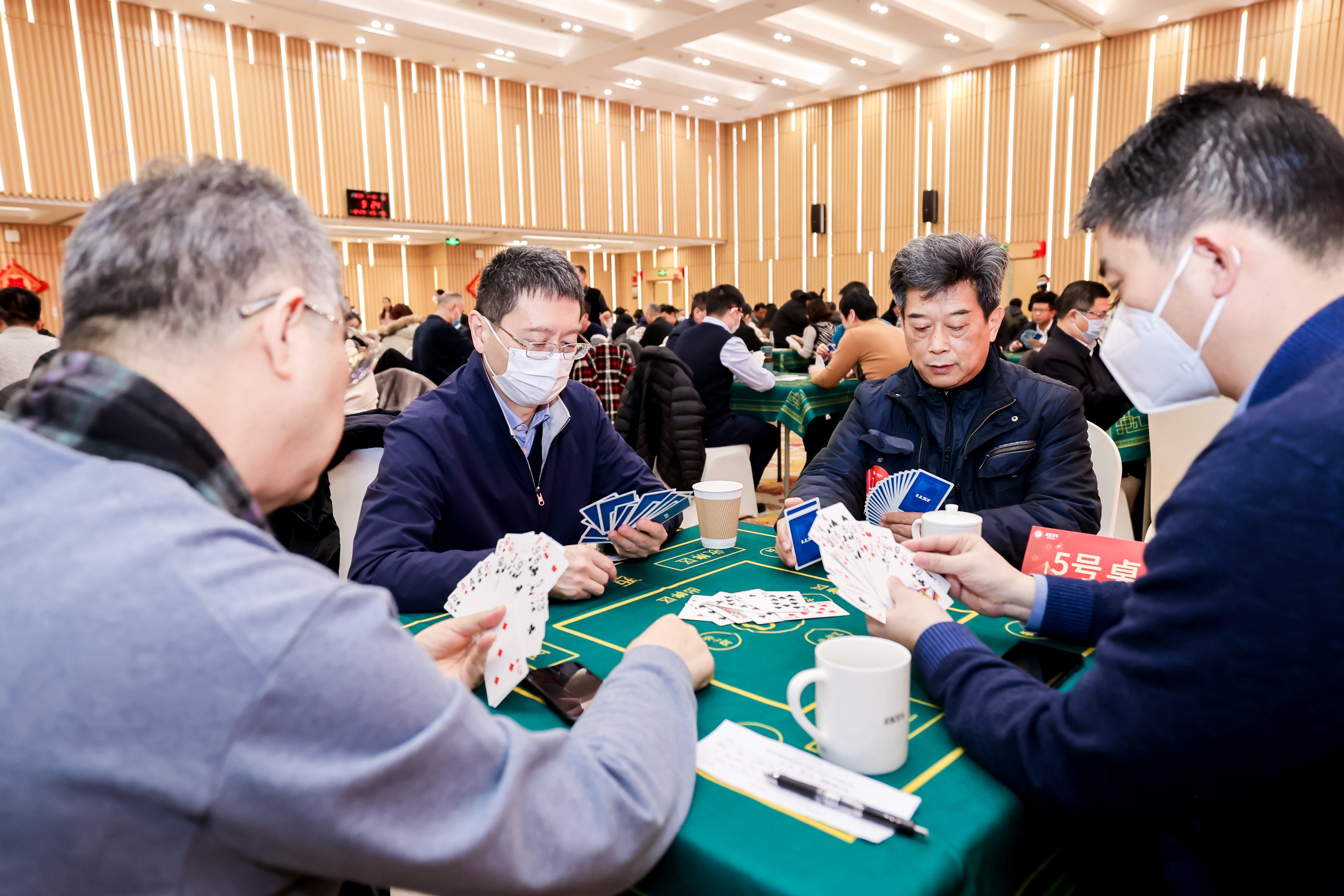 比赛过程中,选手们和队友默契配合、沉着应战,与对手斗智斗勇、比拼牌技,整个赛场气氛既紧张激烈,又轻松活跃。