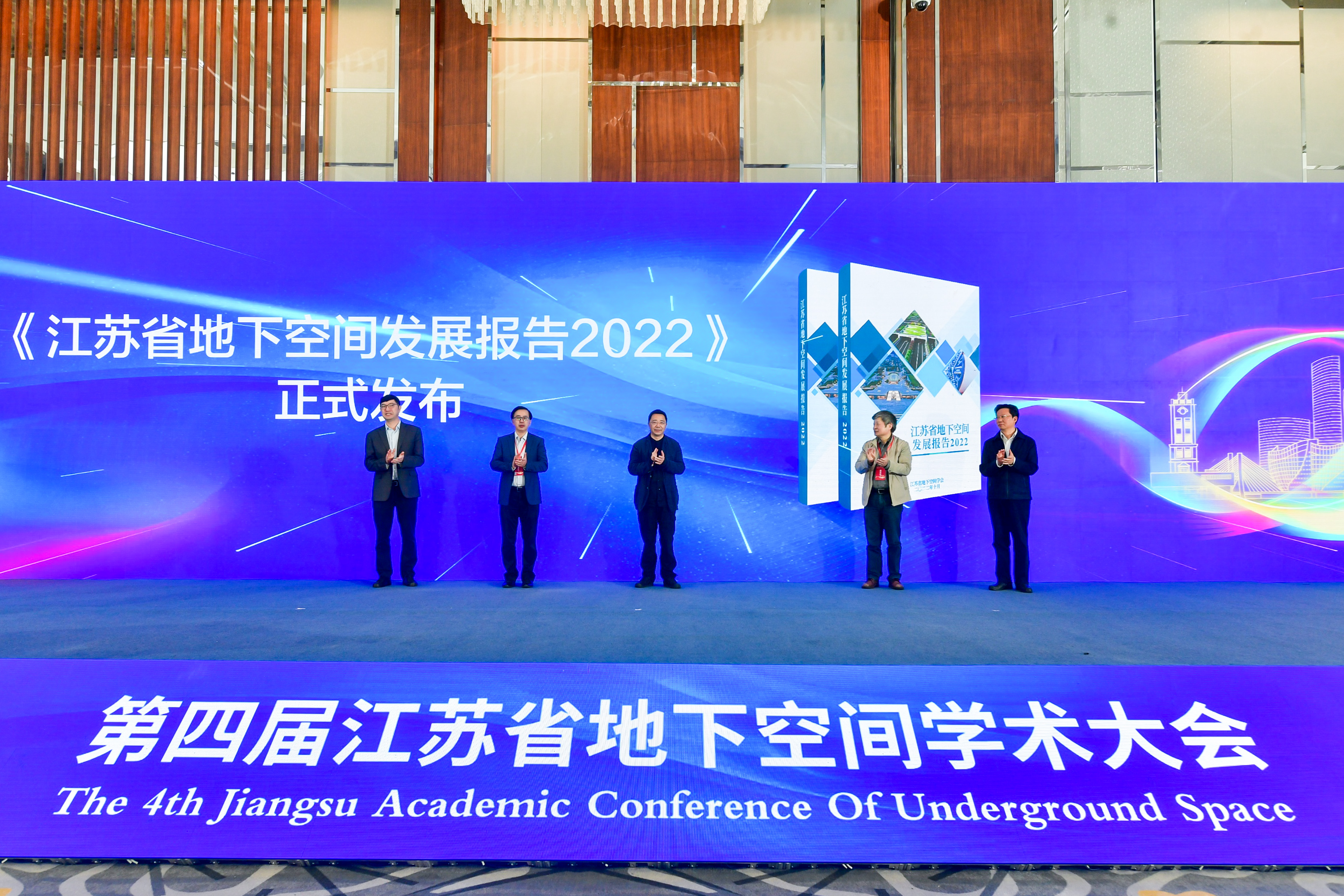 中国科学院院士段进,江苏省科协党组成员、副主席冯少东,江苏省住建厅副处长张海达,江苏省地下空间学会理事长黄富民,英国上市公司365副总裁张海军共同发布《江苏省地下空间发展报告2022》。