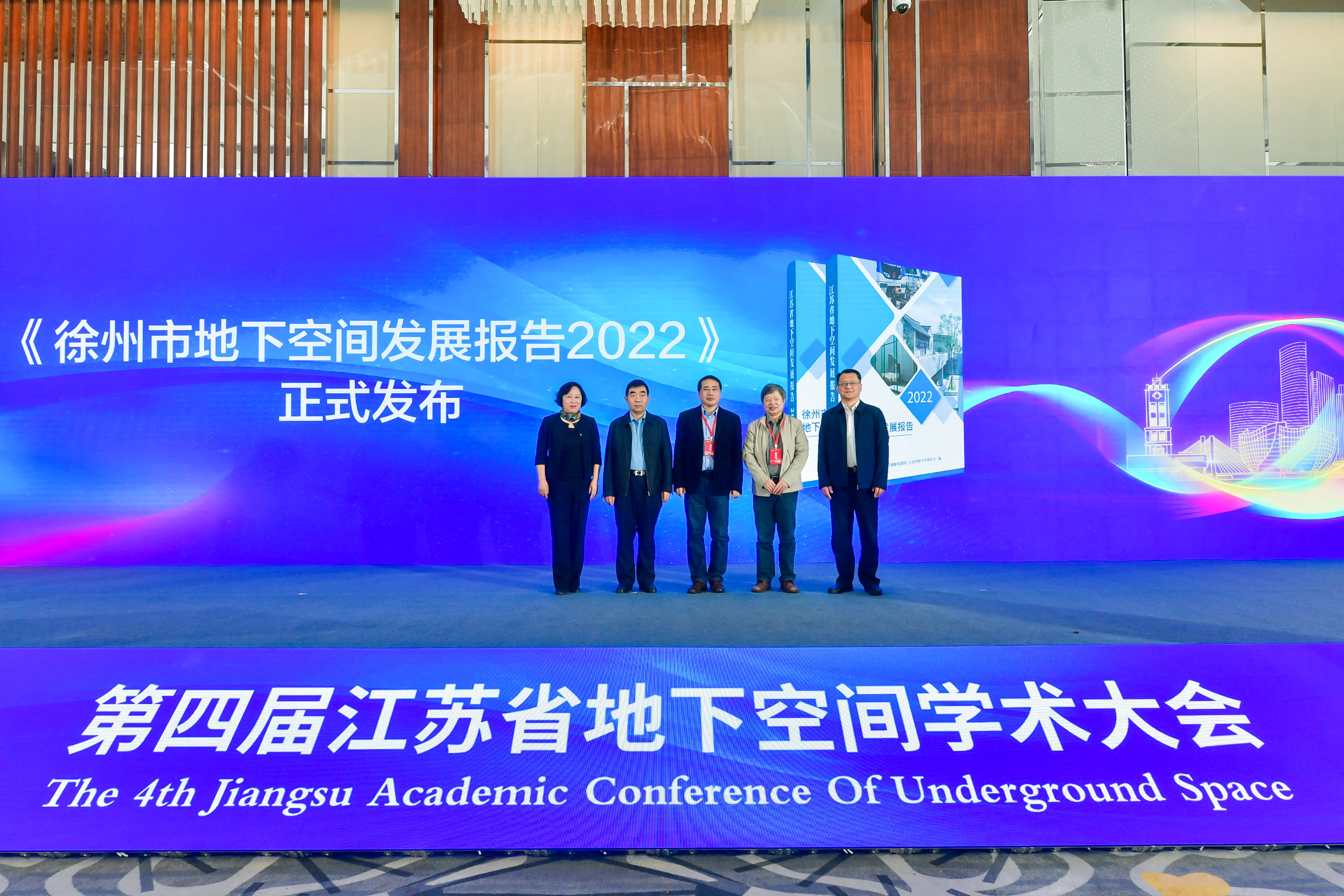 江苏省地下空间学会理事长黄富民、徐州市国防动员办公室副主任陈向阳、徐州市自然资源和规划局副局长曹霞、徐州地铁集团董事长朱明勇、中国矿业大学深部岩土力学与地下工程国家重点实验室主任李晓昭共同发布《徐州市地下空间发展报告2022》。