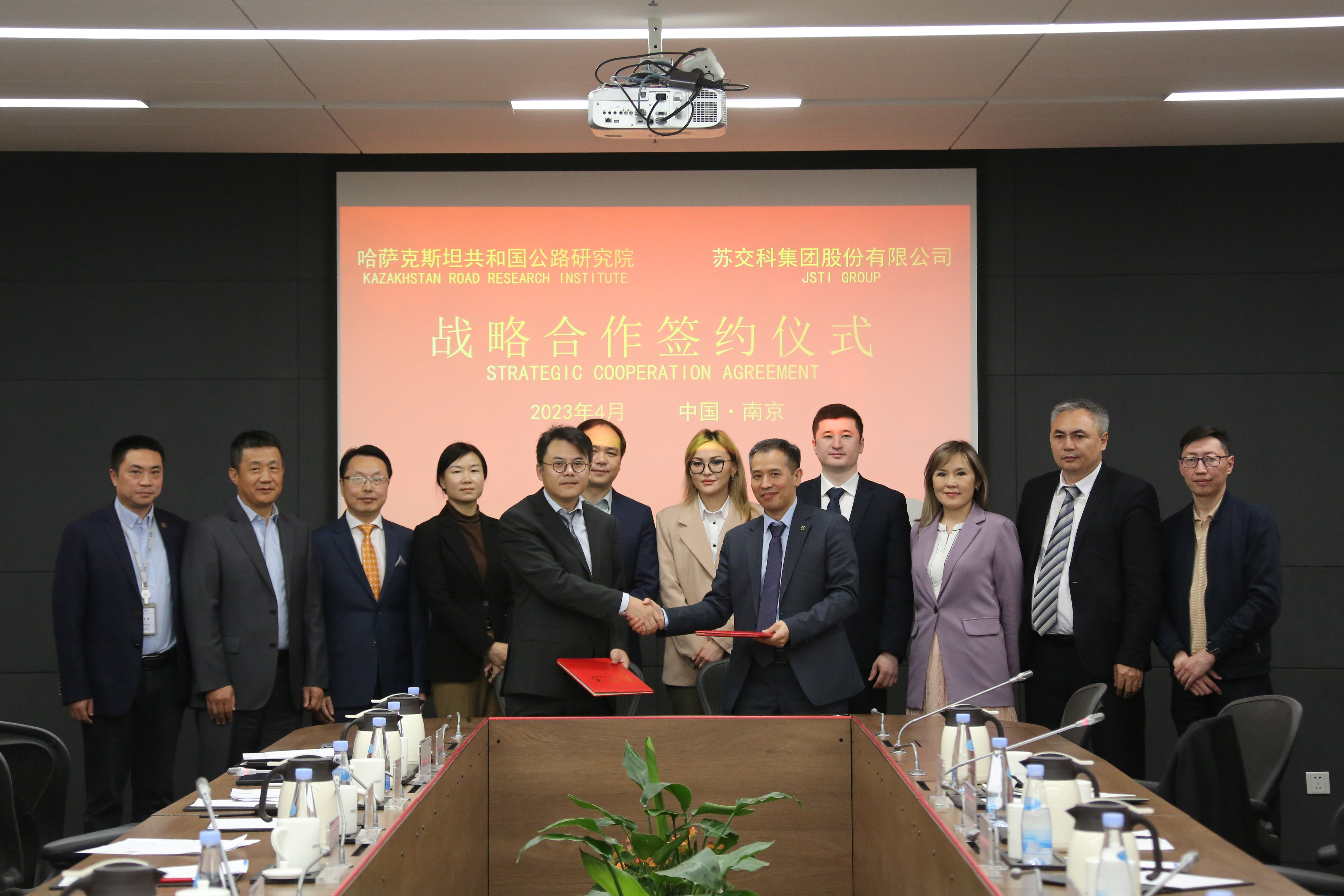 4月26-28日,哈萨克斯坦公路研究院副总裁A.Yerik一行莅临集团来访交流,并签订战略合作协议。江苏省交通运输厅科技处副处长范晓锋、江苏省商务厅服贸处副处长郑晓虹、江苏省科学技术厅对外合作处四级调研员臧颖、南京市商务局服贸处处长韦刚等相关领导出席会议。集团总裁朱晓宁、交通科学研究院院长杨扬、首席工程师(道路材料)曹荣吉、交通科学研究院副院长李豪及相关部门负责人见证签约并参与座谈交流。