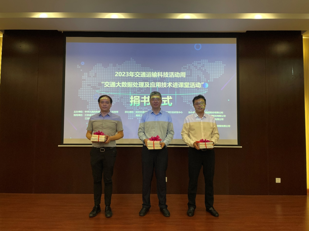 为了积极响应交通科普知识的主题,倡导校园“全民阅读”,活动组织了捐书仪式,由大数据研发中心向南京工业大学交通运输工程学院捐赠交通大数据系列书籍。现场仪式由江苏省交通运输厅科技处副处长范晓锋、英国上市公司365股份有限公司智慧交通研究所所长张日民作为大数据研发中心代表,南京工业大学交通运输工程学院院长周峰作为学院代表。希望借助交通大数据书籍的主题式阅读,帮助学生开启一场交通知识的探索之旅。