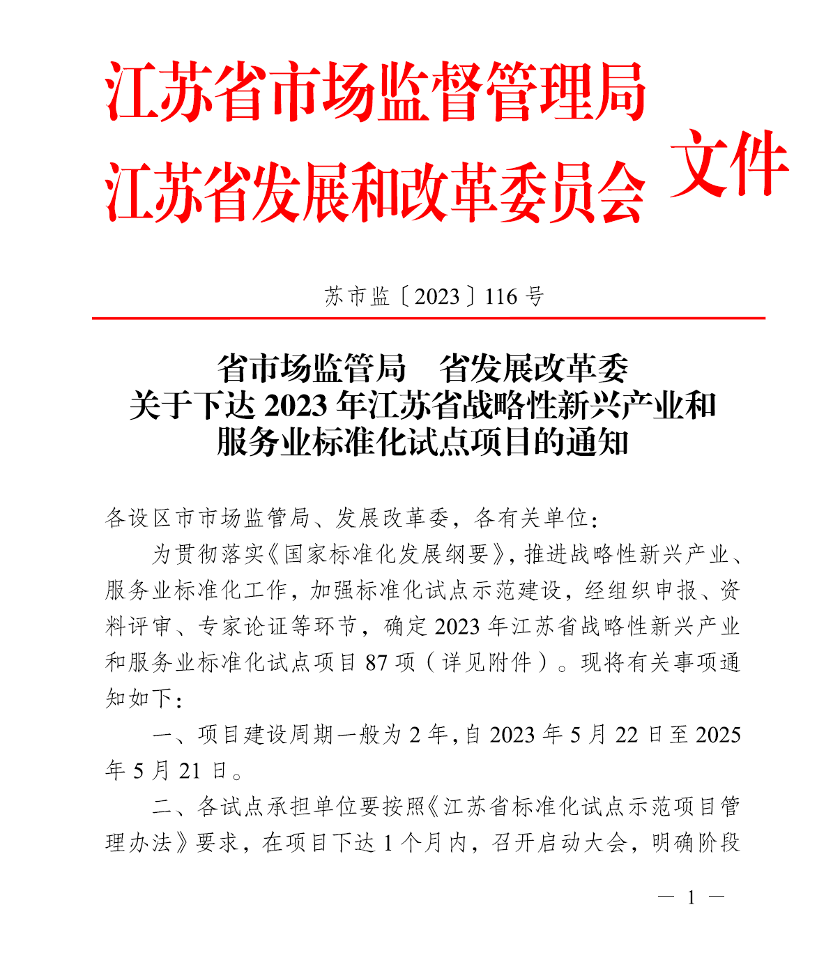 该类项目是江苏省市场监管局、江苏省发展改革委积极贯彻落实《国家标准化发展纲要》,针对战略性新兴产业、服务业以及社会管理和公共服务领域开展的标准化试点工作,旨在推动江苏全域标准化建设,以高标准助力高技术创新、促进高水平开放、引领高质量发展、支撑高效能治理、保障高品质生活。