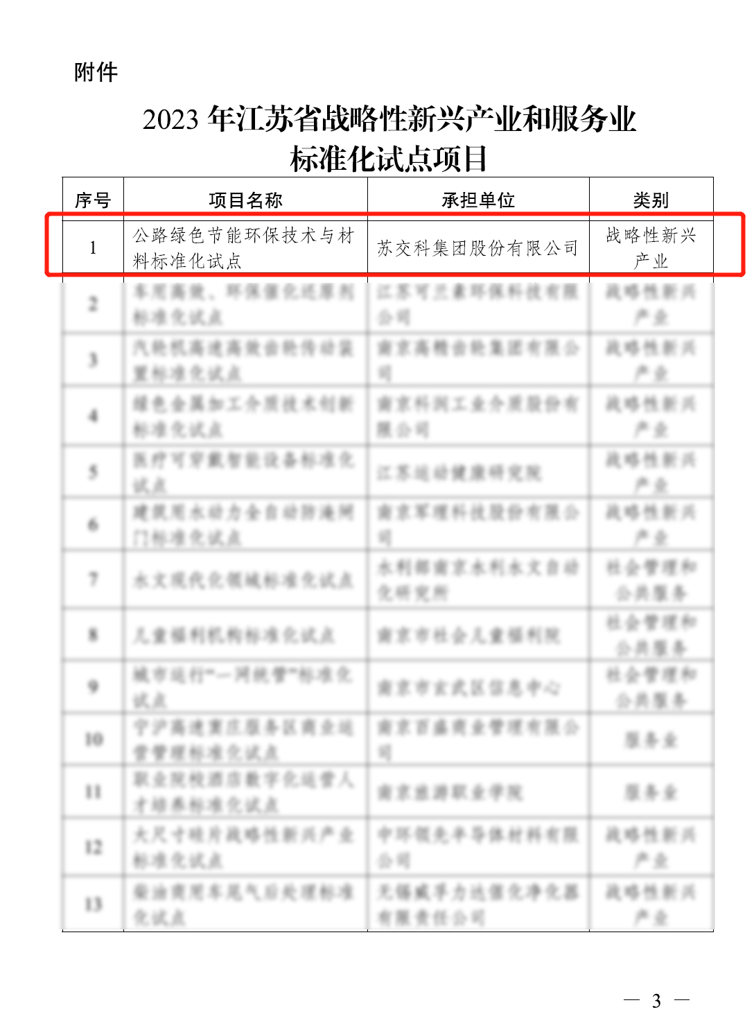 《公路绿色节能环保技术与材料标准化试点》项目成功入选江苏省战略性新兴产业标准化试点