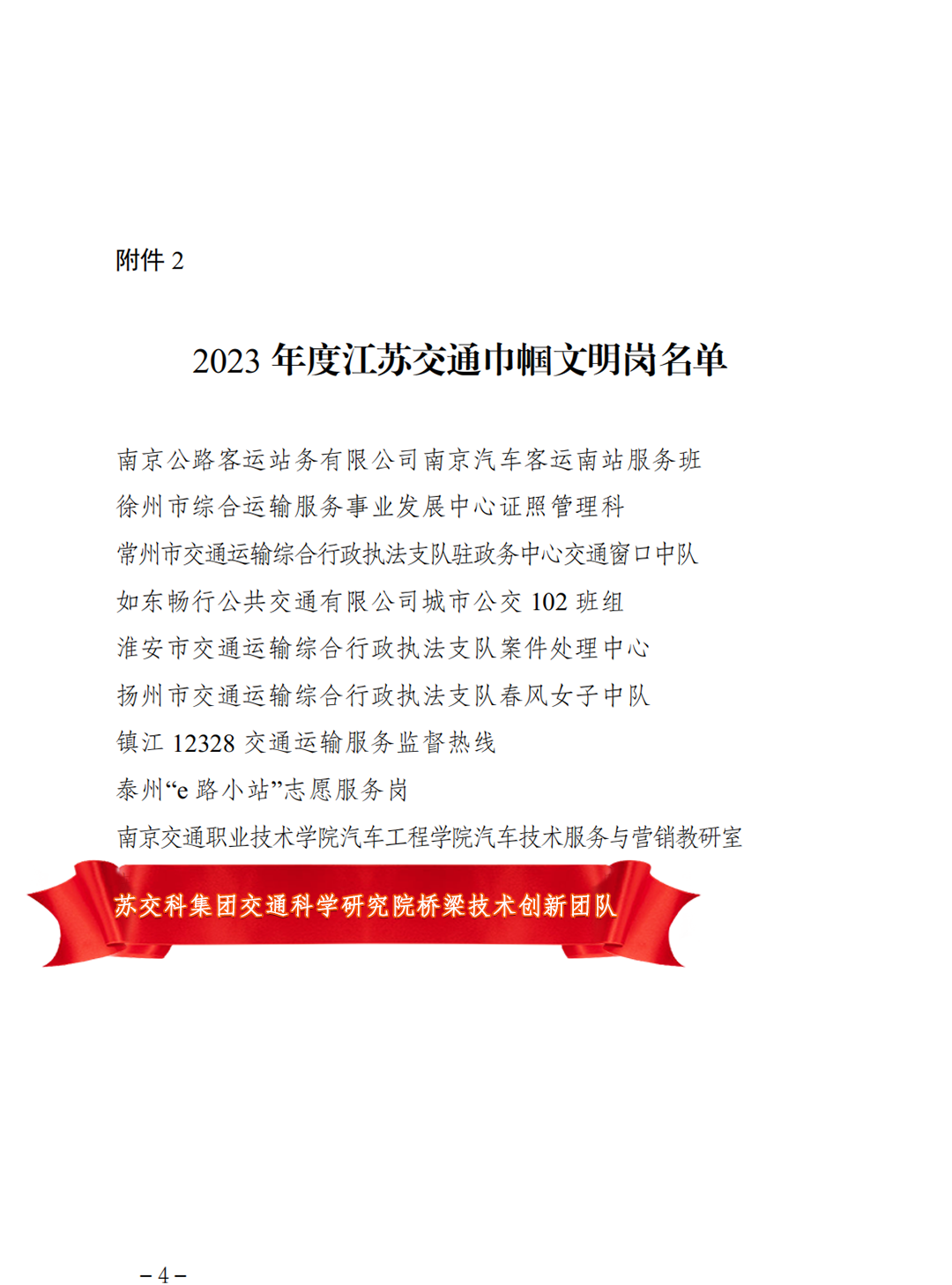 集团交通科学研究院桥梁技术创新团队喜获“2023年度江苏交通巾帼文明岗”荣誉称号,是全省交通运输行业十个获奖先进集体之一。