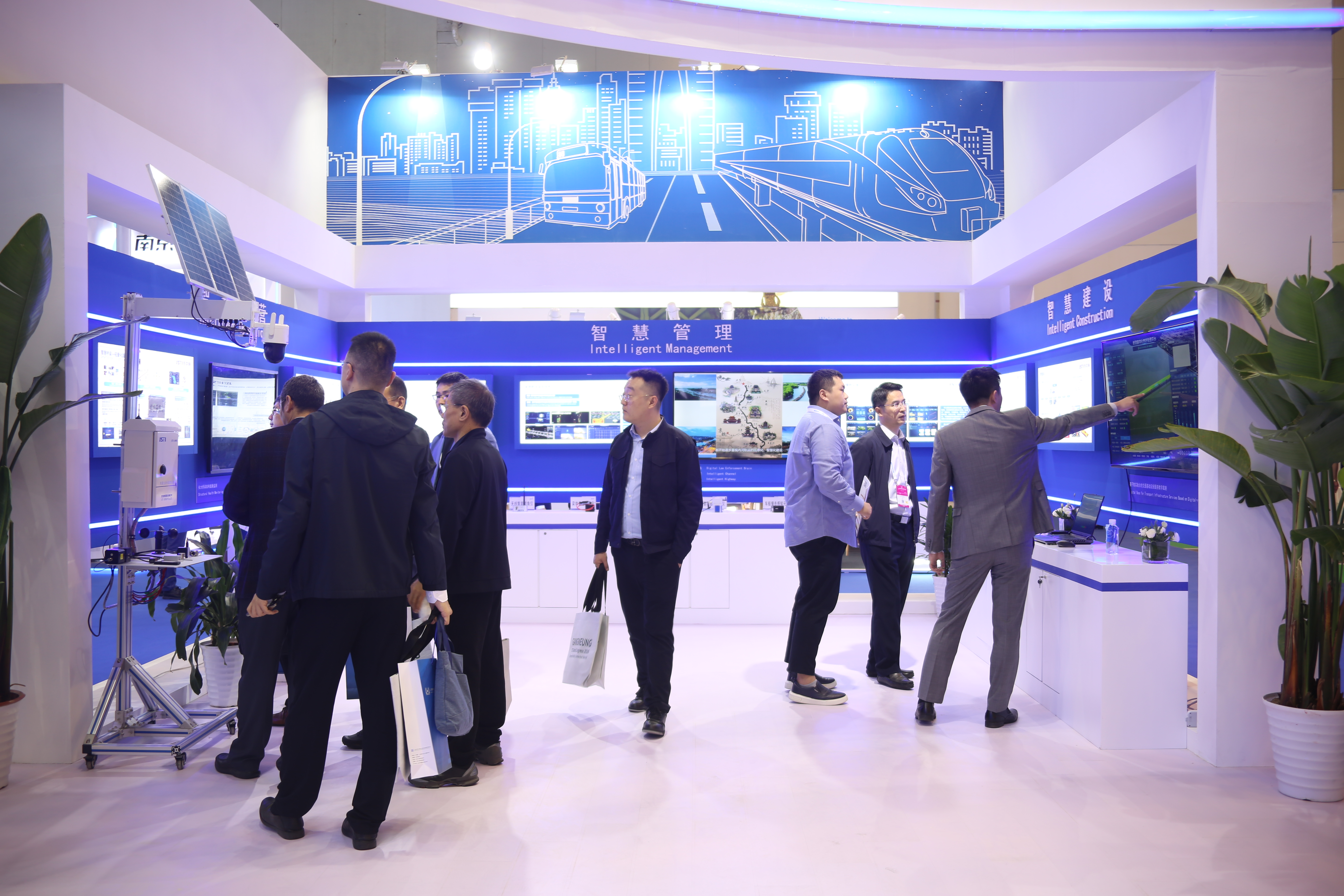 本次集团展位分为智慧建设,智慧管理和智慧运营3大板块。重点展示了绿色交通云平台、交通运行监测调度中心 (TOCC)、智慧交通管理、全息数字孪生技术、道路交通主动安全预警、长大桥梁结构健康监测系统、新一代结构轻量化监测、基于数实融合的交通基础设施服务数字底座“悟空云基建”等核心技术与前沿产品,彰显智能交通思想智慧,助力全球智能交通发展。