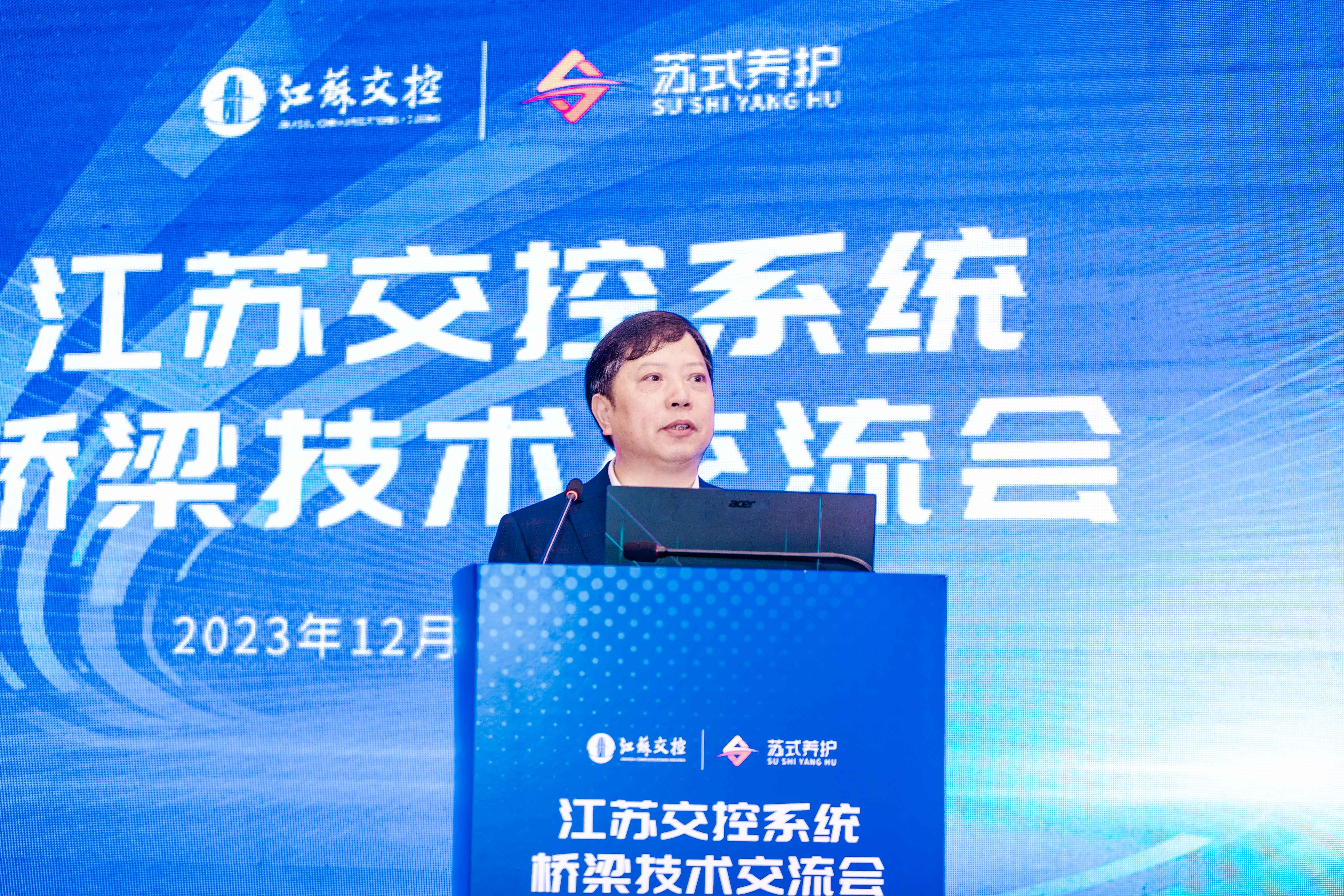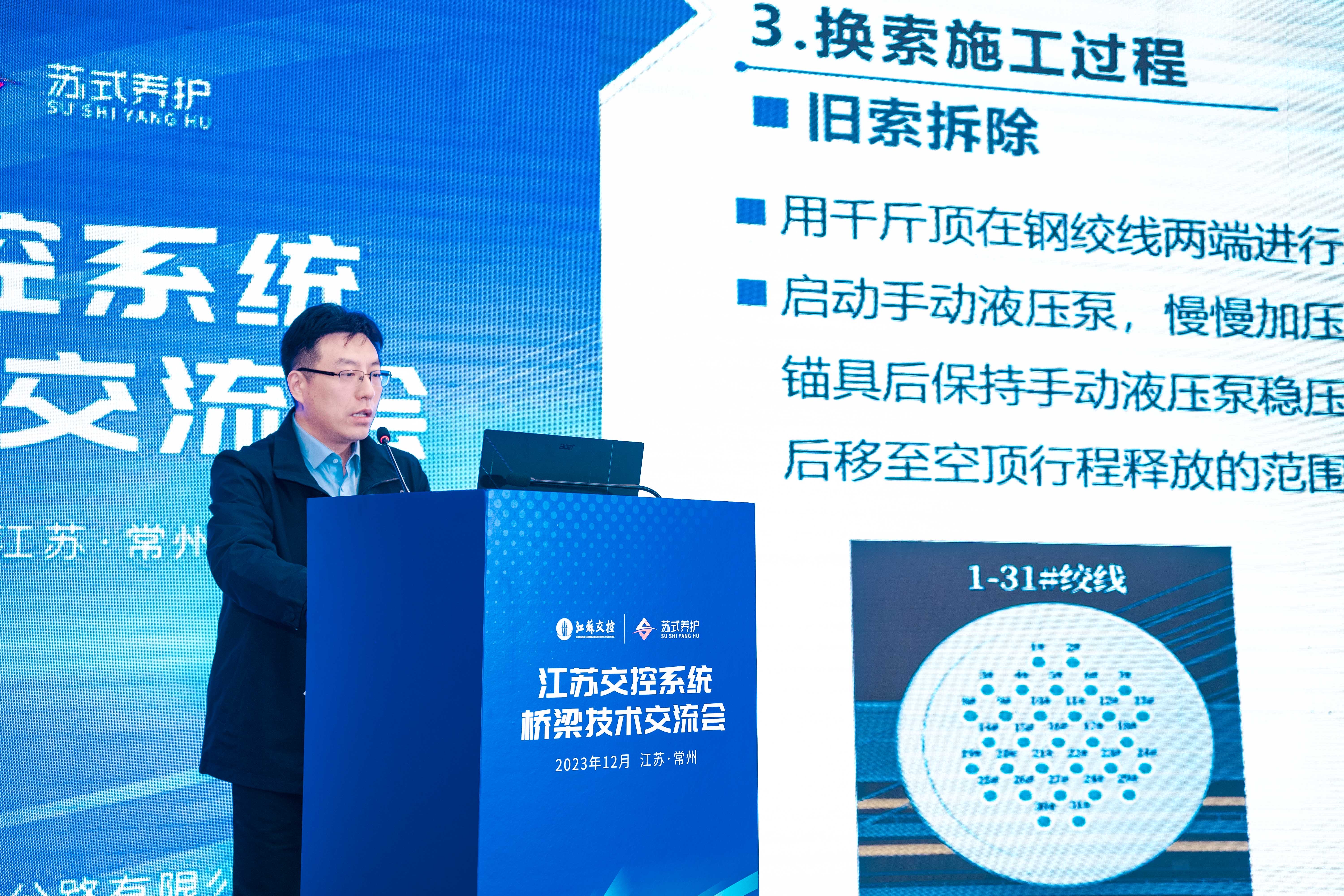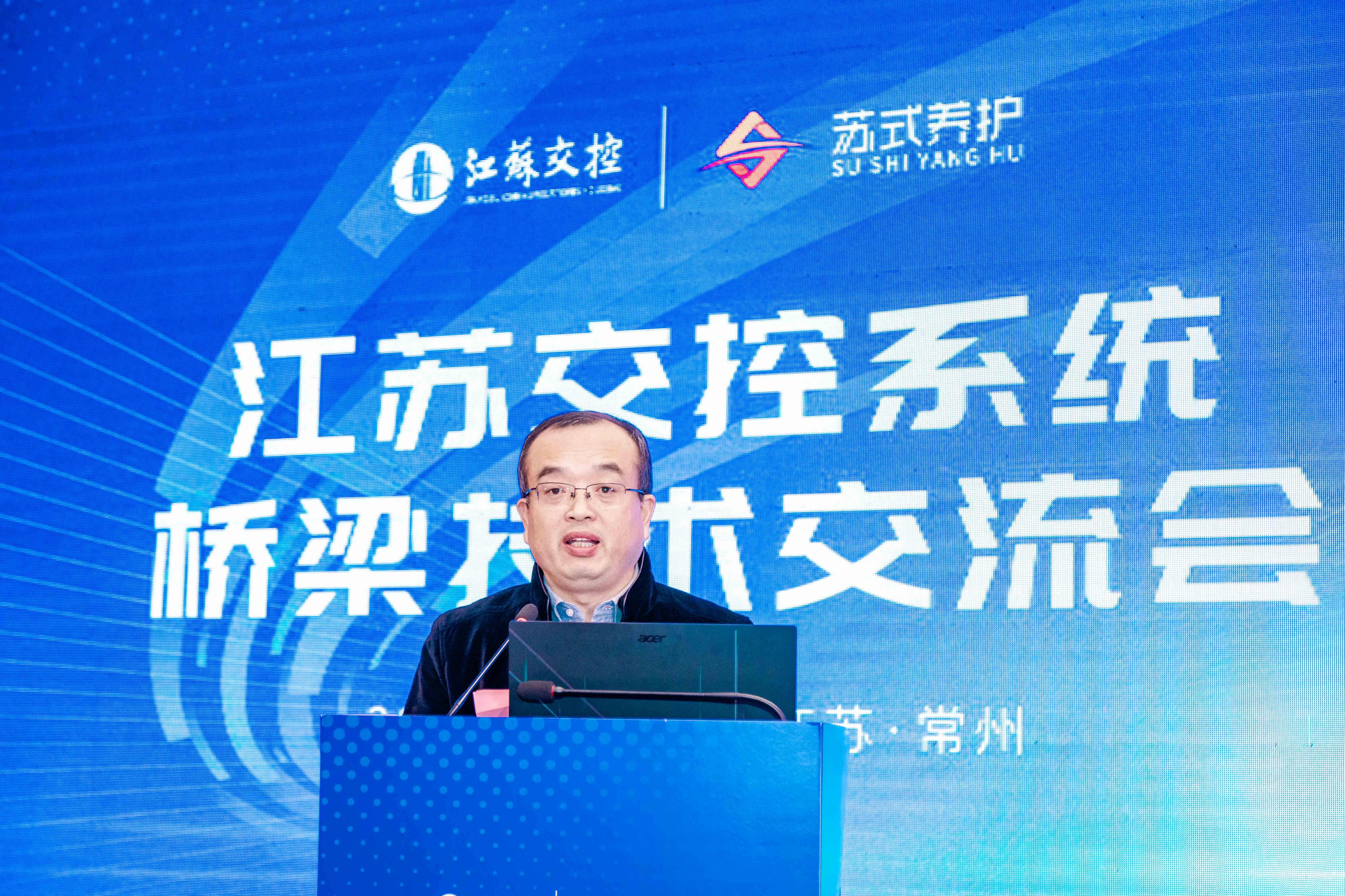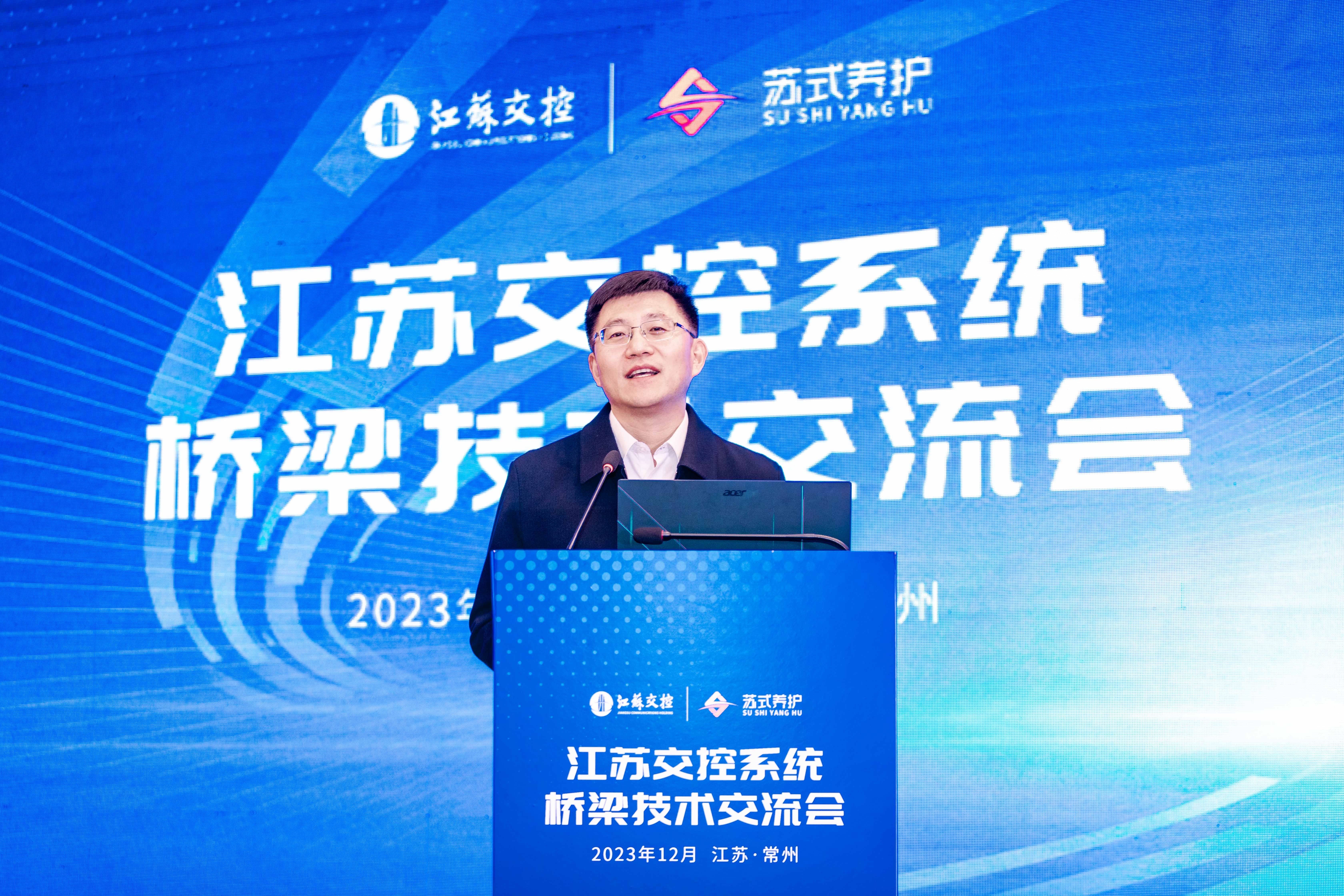 会议由江苏交通控股有限公司工程技术部副部长朱伟主持,江苏交通控股有限公司工程技术部部长茅荃、江苏沿江高速公路有限公司董事长阚有俊出席会议并致辞。江苏交通控股有限公司工程技术部、江苏交控系统所属各路桥单位、江苏高速公路工程养护技术有限公司、江苏高速公路工程养护有限公司、江苏现代路桥有限责任公司等单位的技术人员和代表出席本次会议。集团副总裁(桥梁业务)徐剑、首席工程师(结构检测监测)张宇峰及项目组相关人员出席会议并发表大会报告。