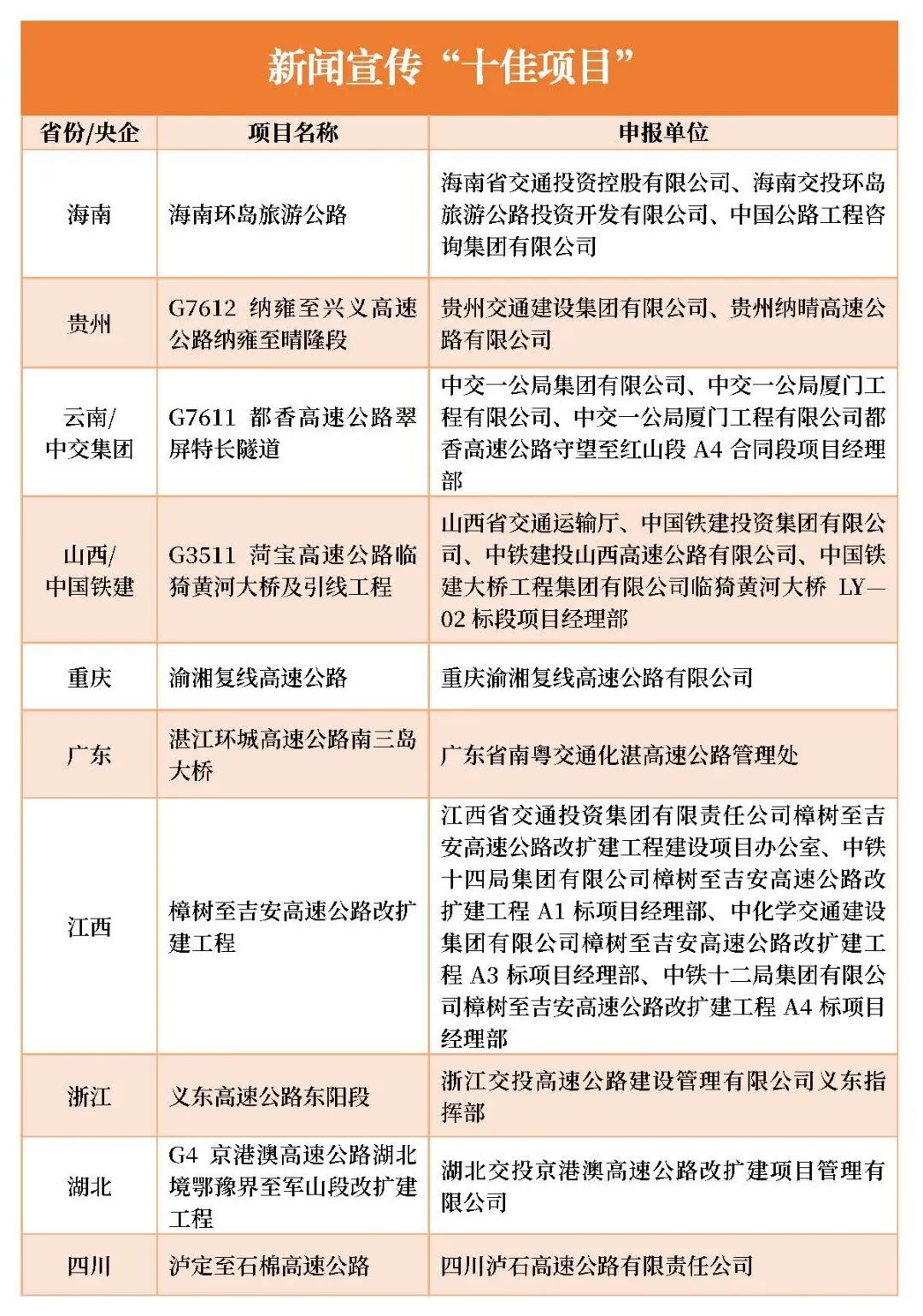 近日,由中国交通报社与中国交通报刊协会主办的2023年公路重大工程新闻宣传“十佳项目”推选展示活动完成终评并进行公示。