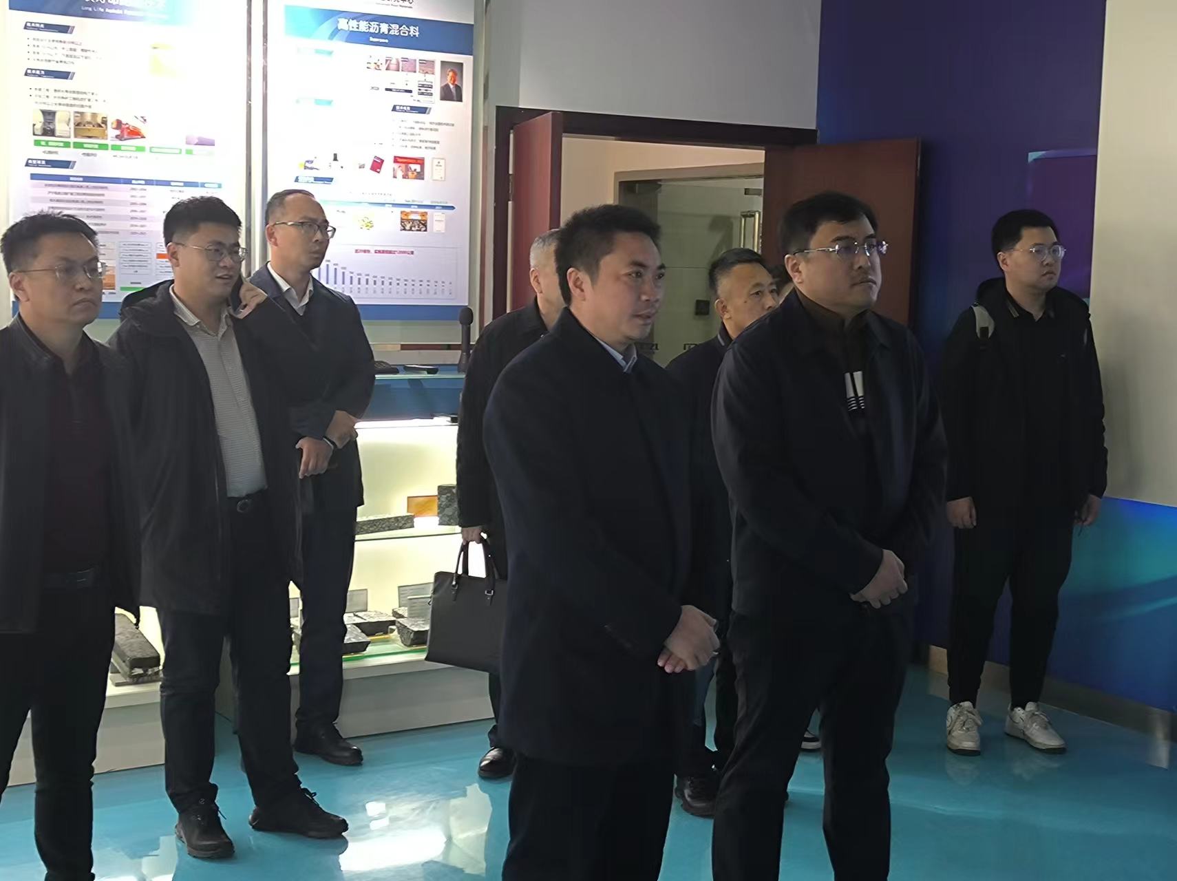 会前,王志军董事长一行参观新型道路材料国家工程研究中心、南京交科数智智慧工地展厅。