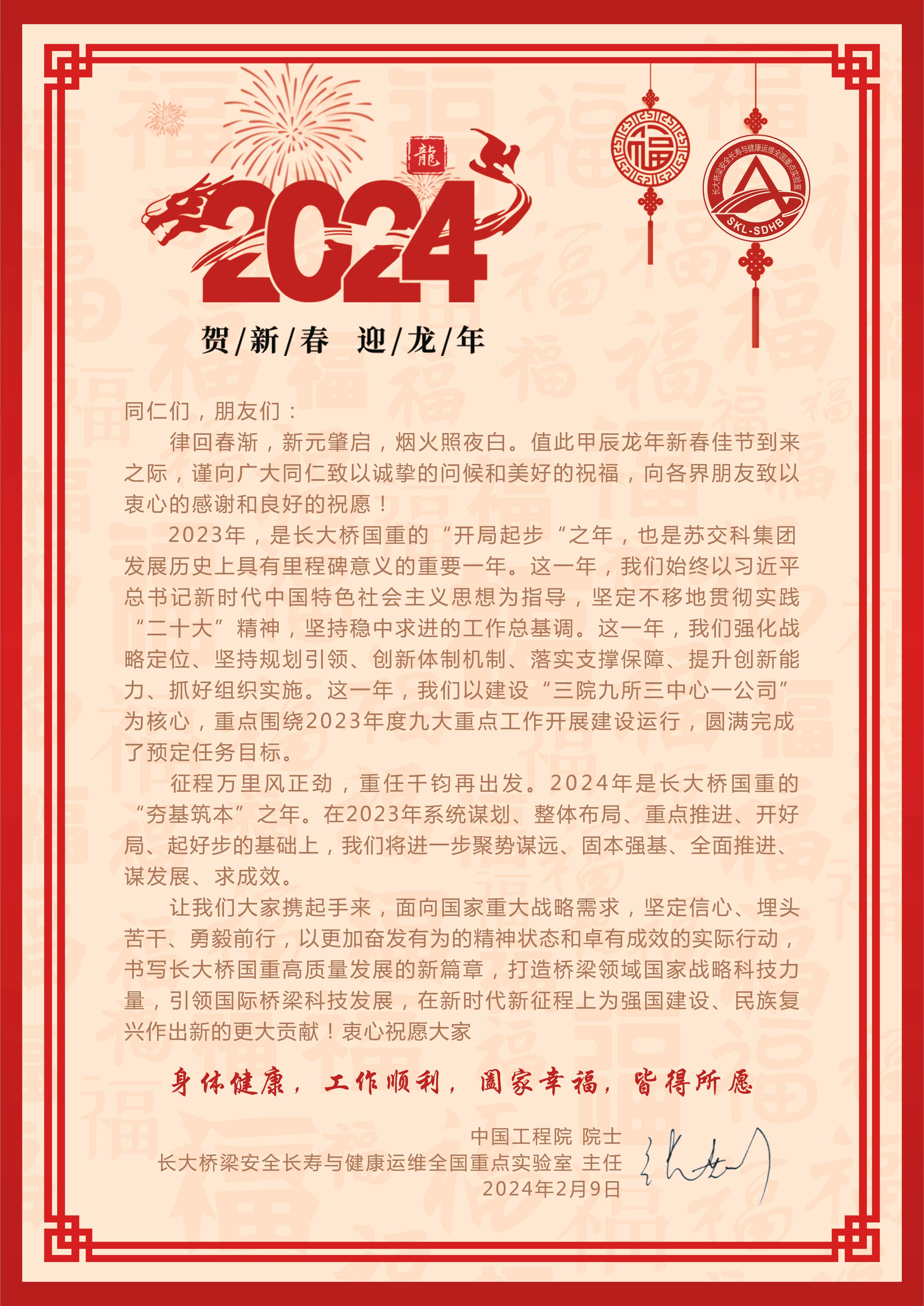 长大桥梁安全长寿与健康运维全国重点实验室2024年新春贺词