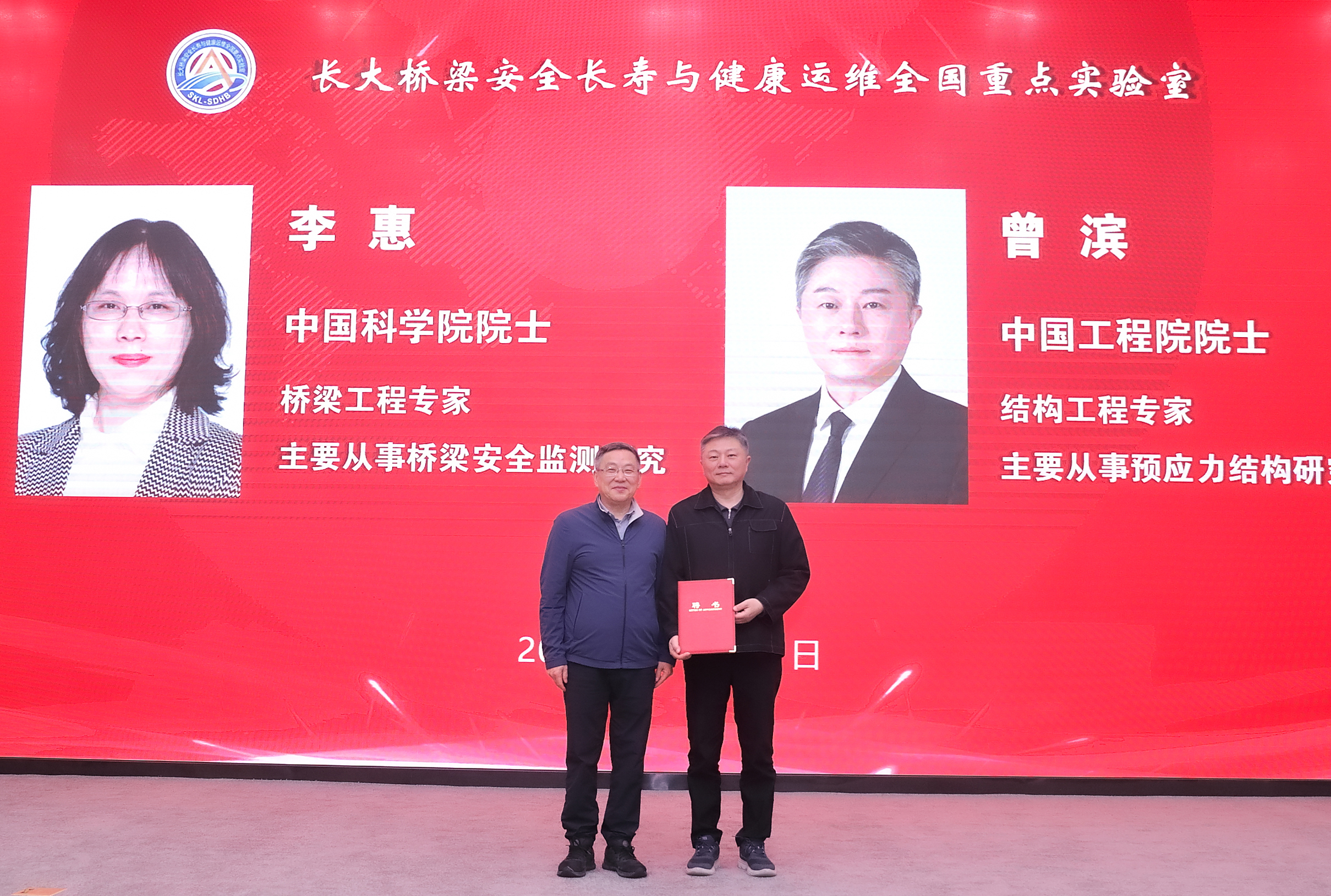 长大桥国重主任张喜刚院士为第一届学术委员会新增委员颁发聘书