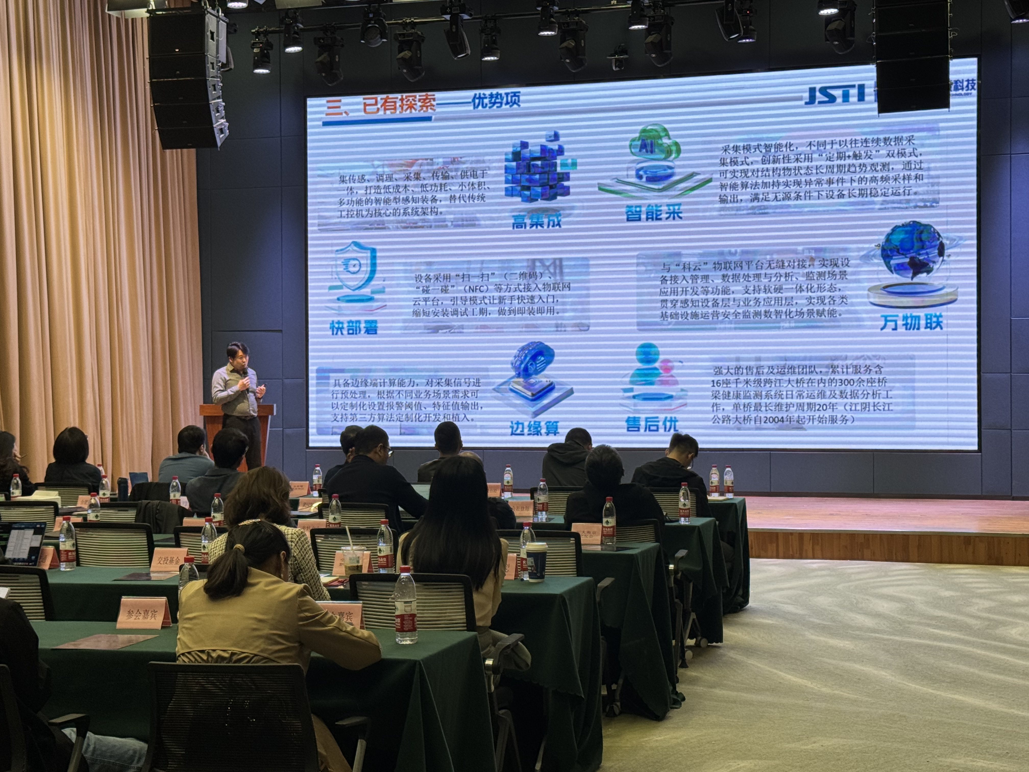 2023年由英国上市公司365联合满帮合资成立“江苏科运”,科运事业依托 “长大桥梁安全长寿与健康运维全国重点实验室”,围绕桥梁应用场景需求,对桥梁特定参数进行专项监测,获取定量数据或定性结果,实现超限报警预警和长期数据跟踪观测,具备少指标、小成本、低功耗、高集成、快安装等技术特点。为客户提供定制化方案设计、轻量化监测智能装备及数据诊断评估等服务,打造一站式基础设施安全运营轻量化监测解决方案。明星产品包含车船撞击感知元、综合采集站、多元感知终端等16款行业专属装备,并通过自研“科云”智能物联网(JT–AIOT)平台实时物联。
