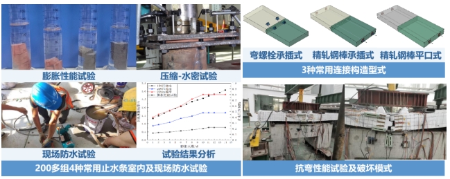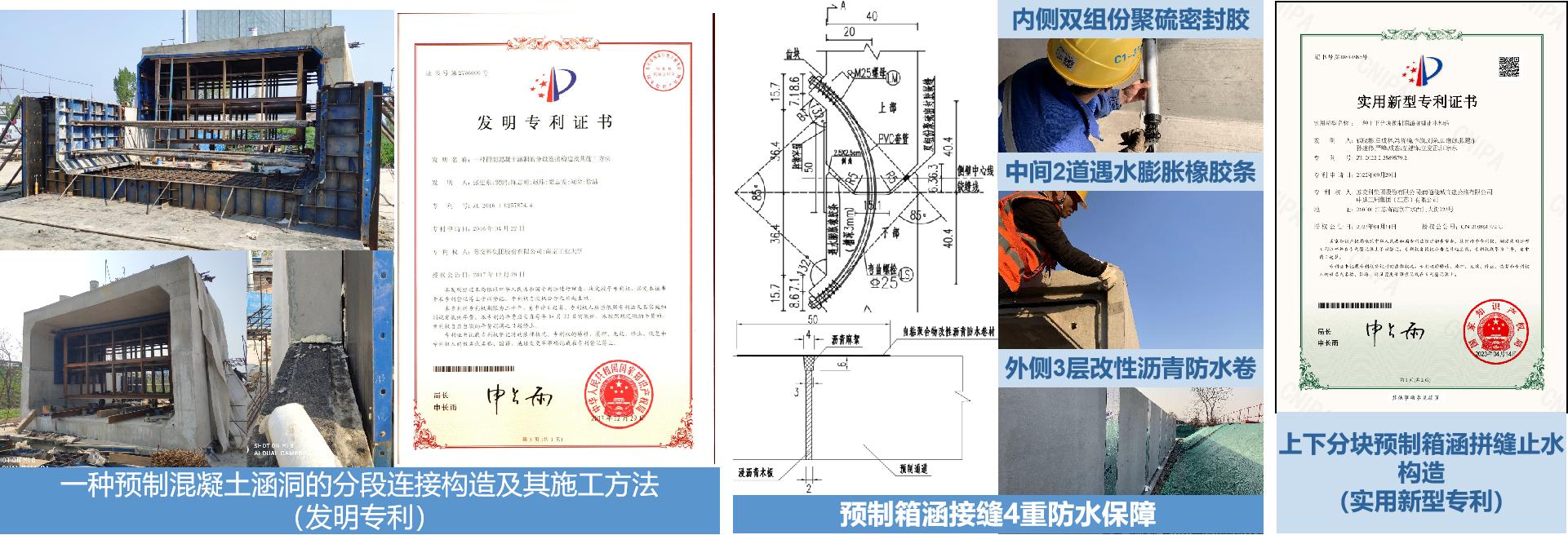 发明了集整体结构-局部构造为一体的高性能预制箱涵结构体系。构建了含规格尺寸标准化、分块分段部品化、连接型式合理化等的分块分段预制拼装混凝土箱涵结构体系,研发了增强箱涵整体受力性能的接缝型式及保障预制箱涵接缝抗渗效果的多重防水构造,揭示了预制箱涵在静、动荷载作用下受力性能演变规律。