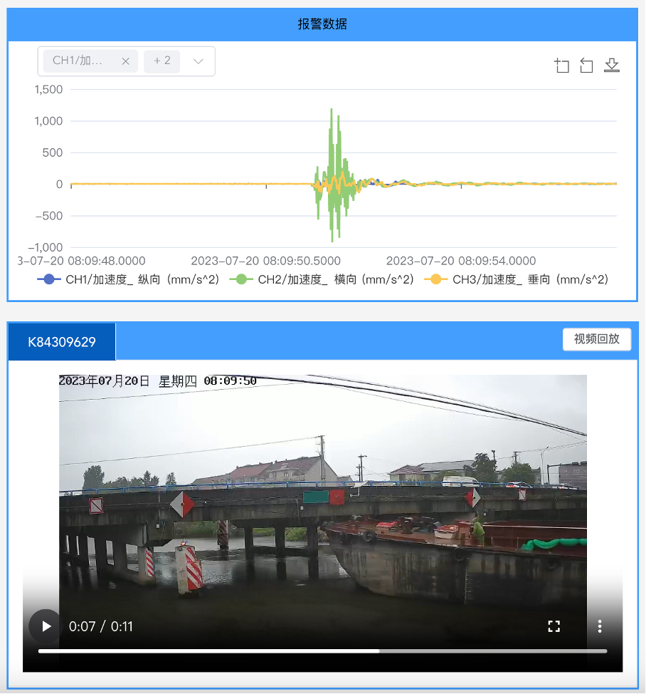 针对车船撞击桥梁风险场景,研发了撞击感知元装备(KY-L2X0),集成传感、采集、传输、供电、分析于一体,即装即用,能够捕获撞击信号并及时报警;