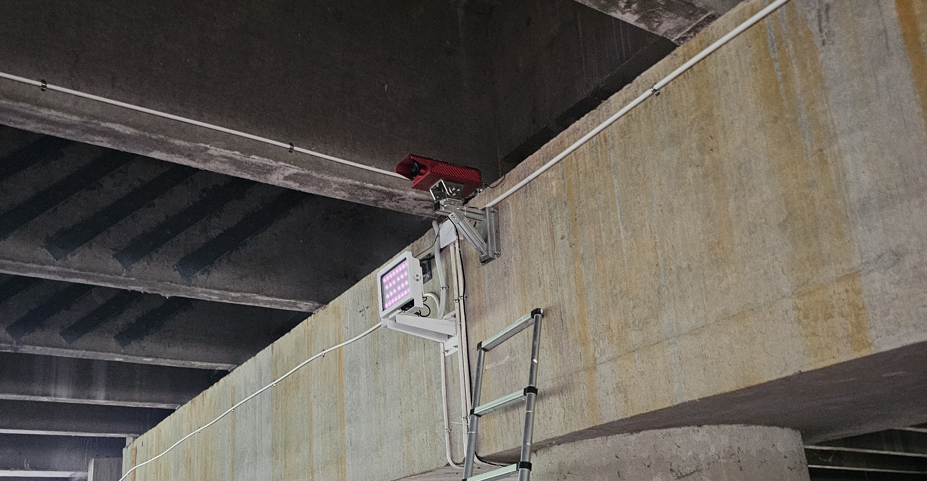 针对大件运输、重载车辆通行时桥梁大变形问题,开发了视觉图像位移传感器(KY-S100),通过图像分析算法实时解算桥梁挠度变化,超过阈值后及时报警并视频记录桥面交通状态,有图有数据便于事件追溯。