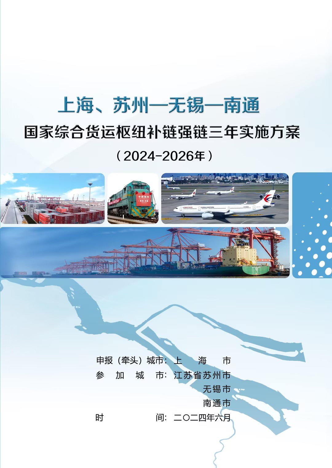 2022年,财政部、交通运输部联合印发了《关于支持国家综合货运枢纽补链强链的通知》(财建〔2022〕219号),国家综合货运枢纽补链强链工作正式启动,计划自2022年起,利用3年左右时间集中力量支持30个左右城市(含城市群中的城市)实施国家综合货运枢纽补链强链,采取“奖补结合”方式,安排一定规模的车辆购置税收入补助地方资金予以支持,本次上海、苏州—无锡—南通成为第三批入选城市。