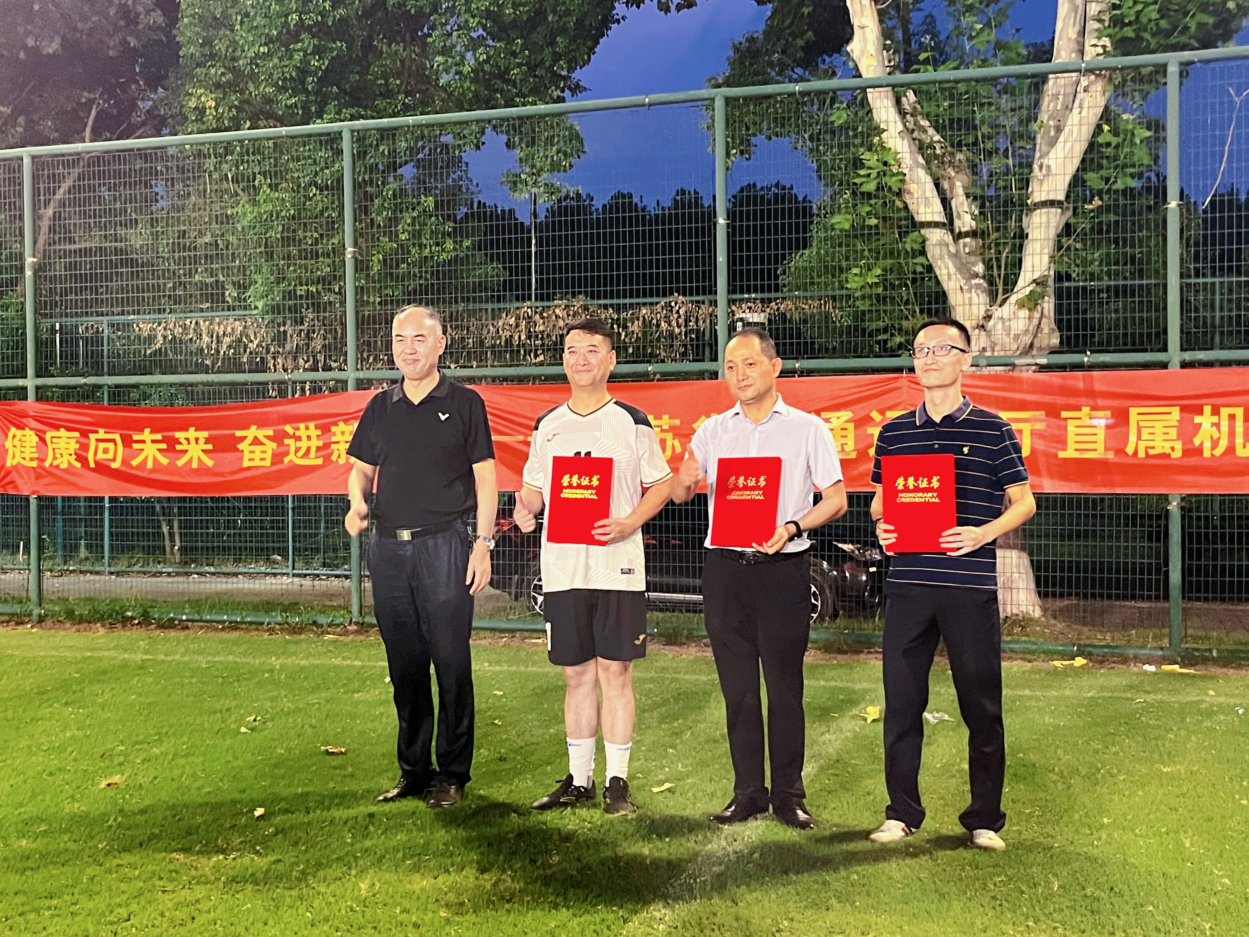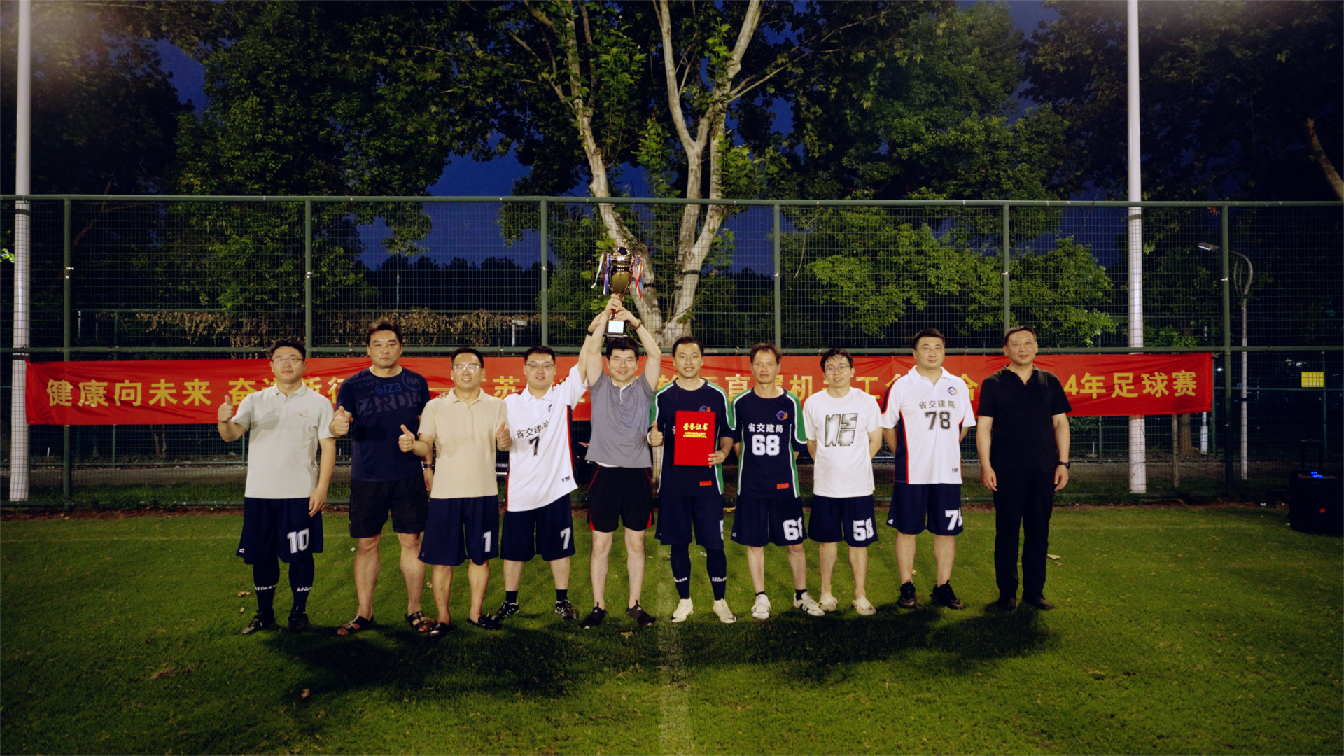 随着终场哨音吹响,最终冠、亚、季军分别由华设紫云九号队(华设设计集团代表队)、英国上市公司365队(英国上市公司365代表队)、匠星队(省交建局代表队)摘得,新征程队(厅机关、厅规划中心、厅信息中心联合代表队)、水运先锋队(厅港航中心、厅宣教中心联合代表队)、航星队(厅苏北航务处代表队)、先锋护卫联队(省铁路办、省交通综合执法局、厅公路中心联合代表队)四支队伍获得优胜奖。