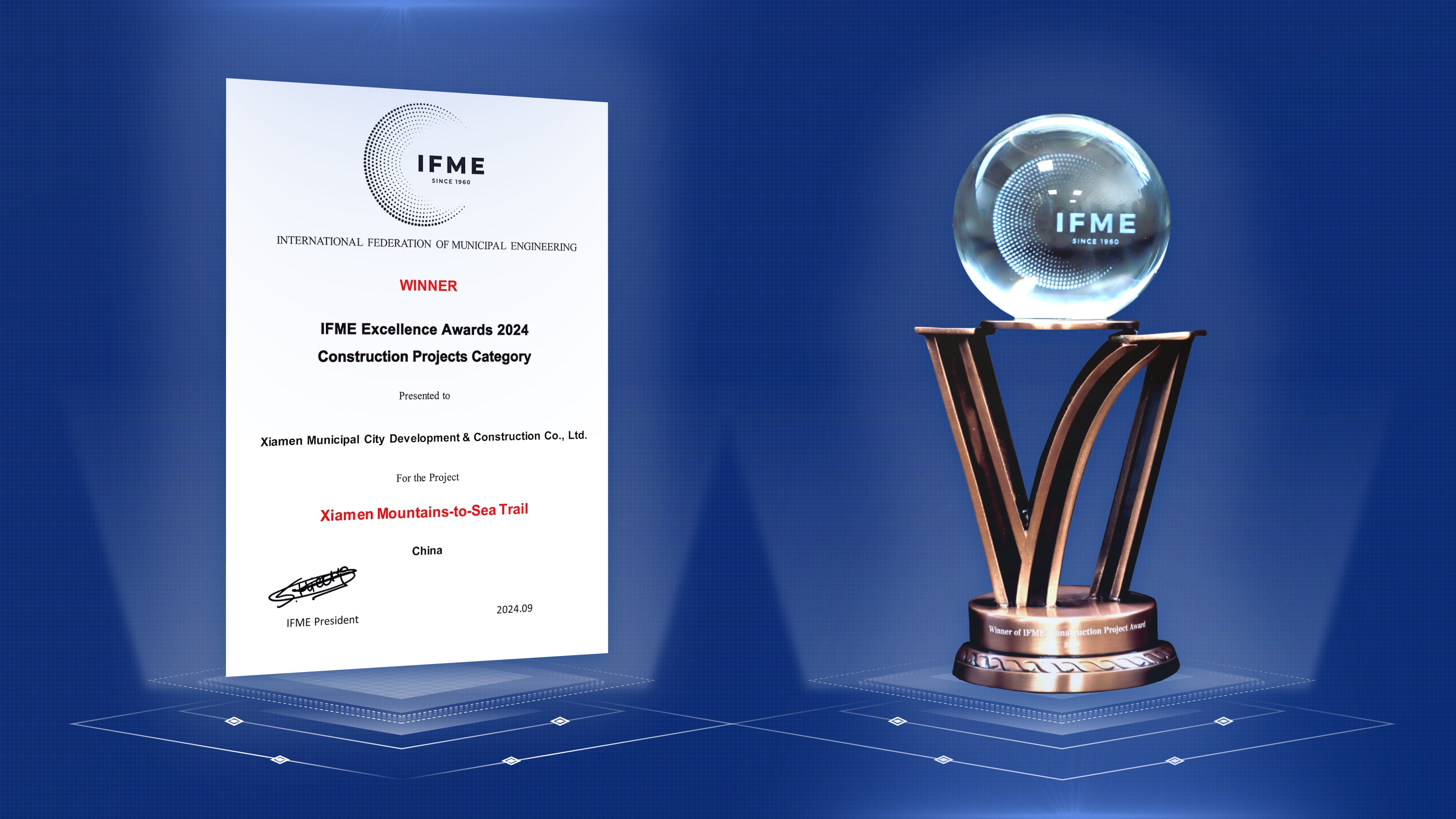 近日,荷兰乌得勒支未来绿色城市大会发布公告,集团旗下厦门市市政工程设计院有限公司(以下简称“厦门市政院”)设计的“厦门山海健康步道”项目,经中国市政工程协会推荐,凭借其卓越的质量和影响力从众多参赛项目中脱颖而出,荣获该协会2024年工程建设项目奖项——国际市政工程协会卓越奖(IFME Excellence Award 2024)。