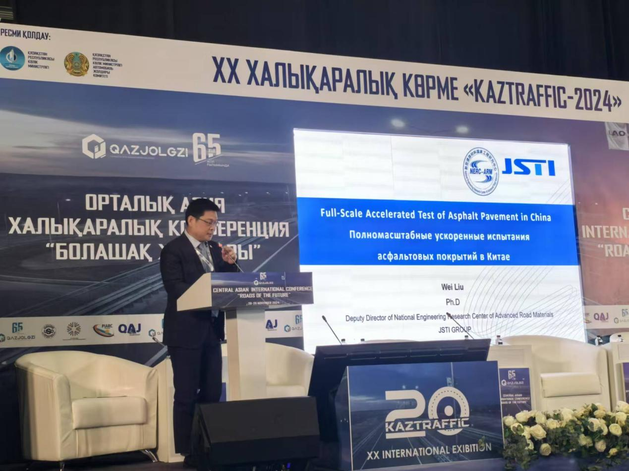 会上,交通科学研究院总工程师刘伟发表了《沥青路面加速加载实验》学术报告,交科瑞路总经理王文峰代交通科学研究院副院长李豪发表了《数智化技术在道路资产与安全提升的应用》学术报告。汇报内容吸引了来自俄罗斯、哈萨克斯坦等多国道路领域专家领导前来问询。