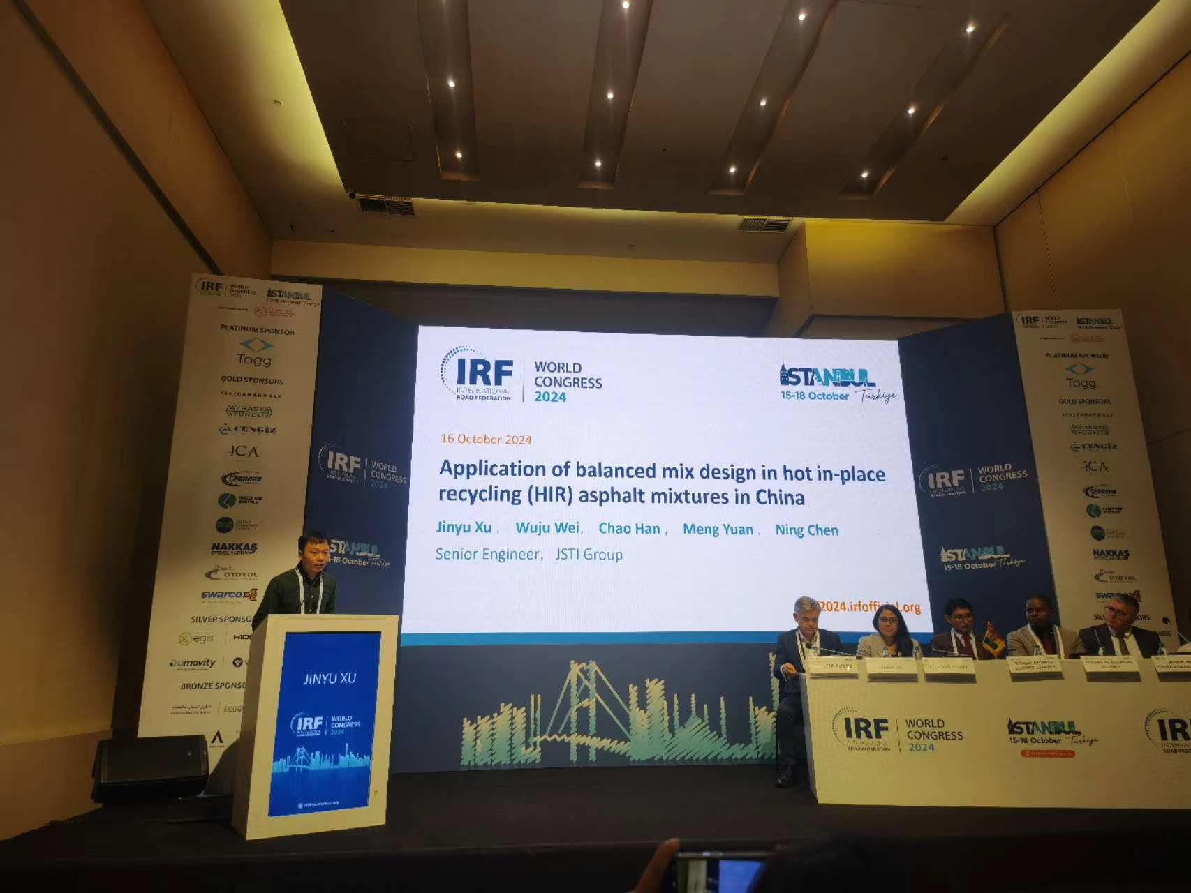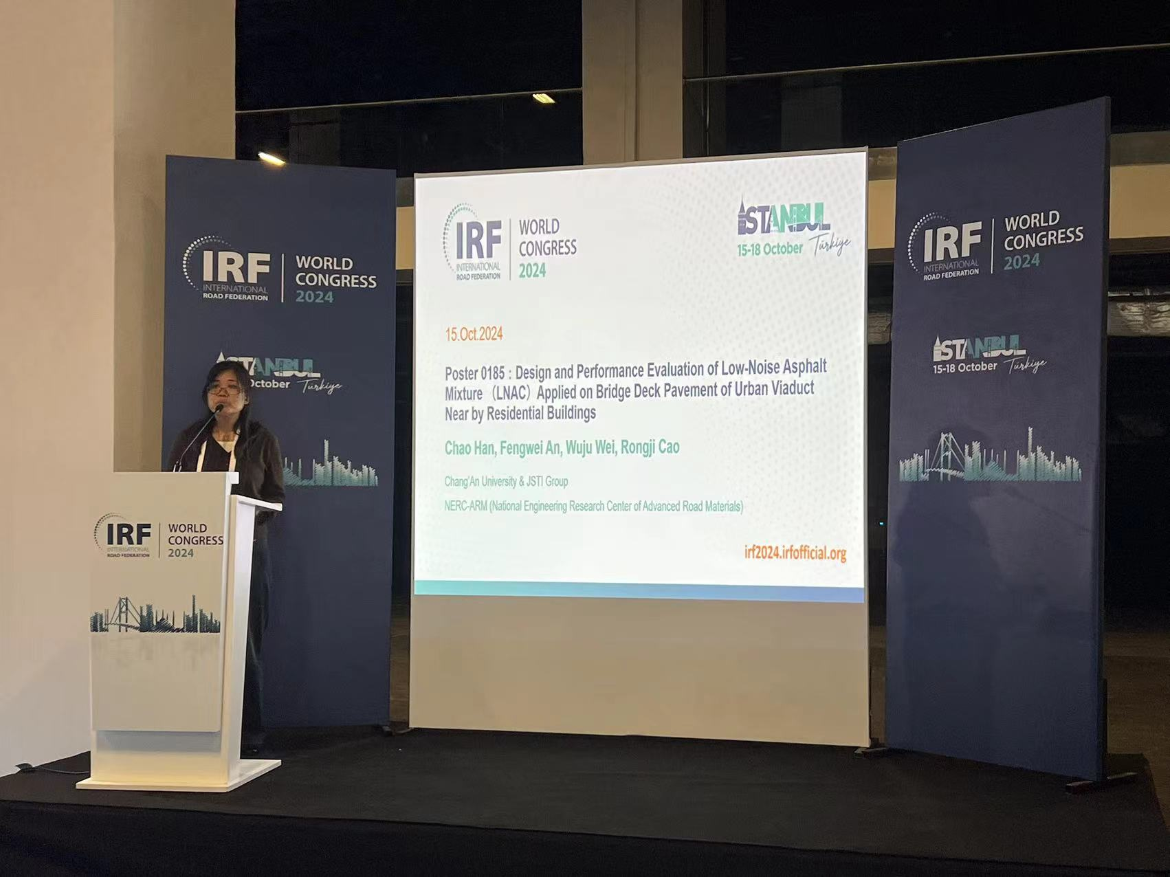 大会期间,集团交通科学研究院道路所副主任工程师安丰伟发表了《Design and Performance Evaluation of Low-Noise Asphalt Mixture (LNAC)Applied on Bridge Deck Pavement of Urban Viaduct Near by Residential Buildings》墙报报告,交通科学研究院二级工程师徐金玉在TS44 - Innovative Materials Recycling Techniques论坛上发表了《Application of balanced mix design in hot in-place recycling (HIR) asphalt mixture in China》主题报告。