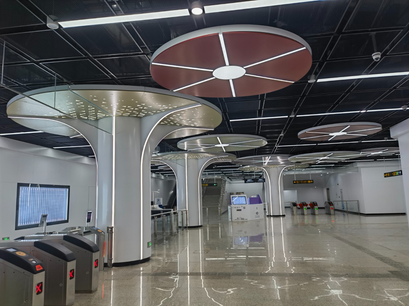 全线车站运用智能高效空调系统、智能直流照明系统,并试点光伏与VAV变风量技术,有效节能减排,彰显绿智地铁特色,为双碳目标添力。