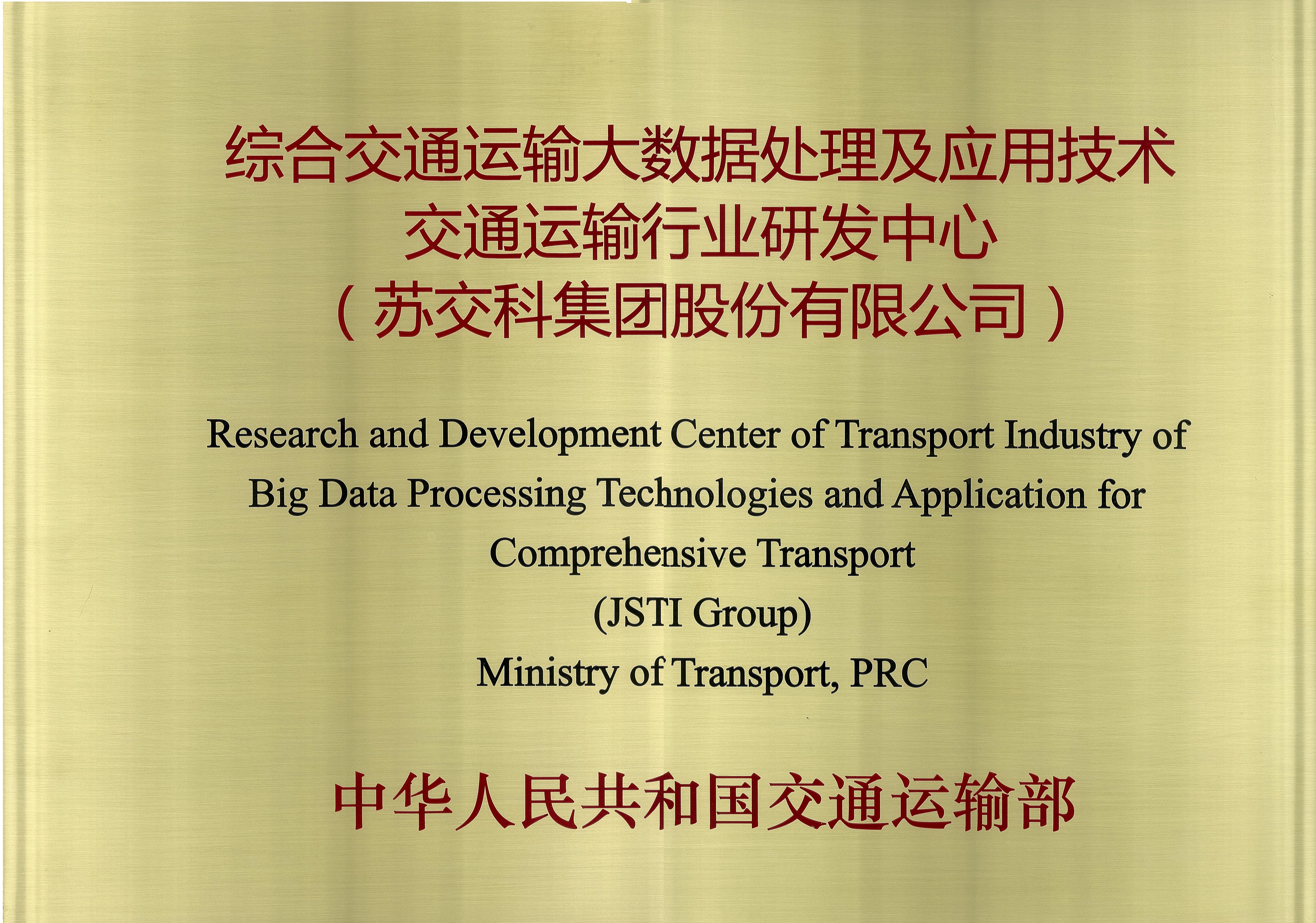 综合交通运输大数据处理及应用技术交通运输行业研发中心(交通运输部,2017)